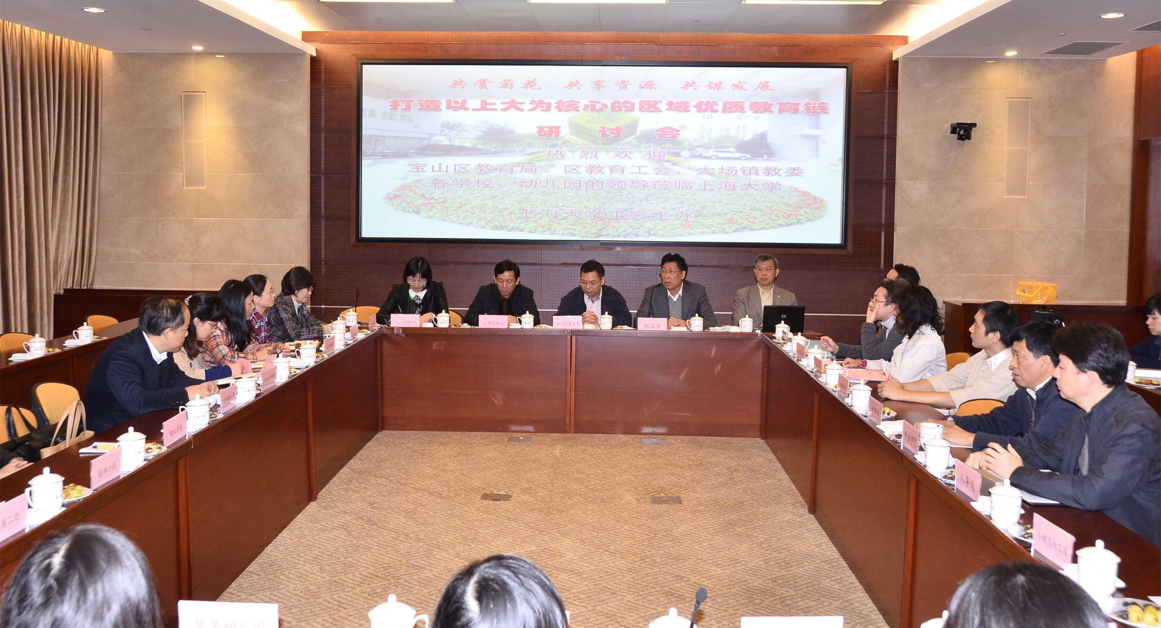 在365官网菊文化节期间,11月13日校工会邀请了宝山区教育局、大场镇教委、上大附中、上大附校以及周边的中小学、幼儿园等各类教育单位来365官网参加“打造以上大为核心的区域优质教育链”研讨会。宝山区教育局陆荣林副局长、宝山区教育工会副主席李霞、大场镇教委主任左忠明,以及上大周边的高中、初中、小学、幼儿园领导出席了会议。