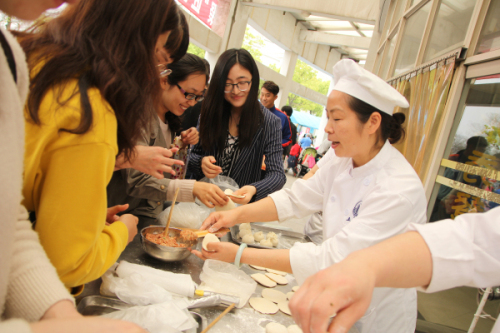 开幕式结束后,欧阳华副校长、宝山区绿化市容局副书记孟跃及部处领导观摩了在校南门广场开展的大场环卫现代化道路保洁设备路演活动。随后,大家来到水秀楼前参观优质服务月的大型展示展销活动。活动现场,精美实惠的菜肴、丰富多样的商品、绿色植物展销、环保节能宣传、爱心义卖、防校园贷宣传等,尤其是食堂门前与师生互动的现场点心制作教学吸引了众多师生的参与,现场气氛热烈,广受大家欢迎。