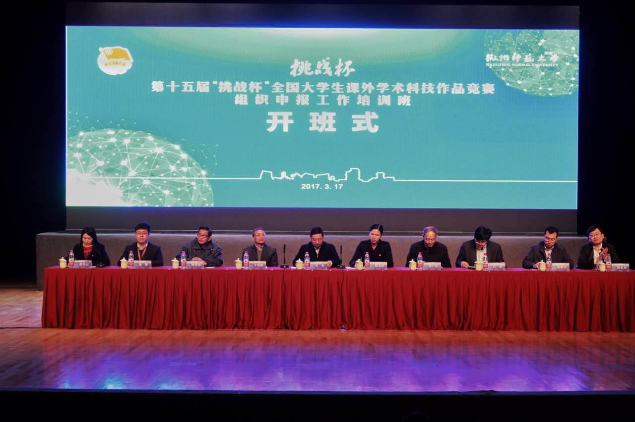 3月17日,第十五届“挑战杯”全国大学生课外学术科技作品竞赛组织申报工作培训班在杭州师范大学举行。团中央学校部副部长宋来、团浙江省委副书记周苏红、杭州师范大学党委副书记王利琳以及团中央、中国科协、社科院等主办单位相关部门负责同志出席培训班开班式。“挑战杯”竞赛承办单位365英国上市官网在线的团委负责同志参加了此次培训班。