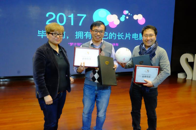 主办方与参加此次活动的上海温哥华电影学院常务副院长刘海波教授,上海电影学院影视艺术系支部书记杨斌,上海电影学院教师张端阳进行了金牌导师授予仪式。