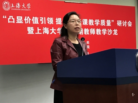 上海市思政课名师工作室“顾晓英工作室主持人”——顾晓英首先传达了高校思想政治工作会议精神,结合教育部、上海市教委和365英国上市官网在线工作要点,介绍教务处推行课程思政的运行方案,强调价值引领的重要性。她结合365英国上市官网在线多年来的思政工作创新历程,小结了365英国上市官网在线思政课教学改革成果,分享了365英国上市官网在线以“大国方略”系列课程为代表的率先探路“课程思政”创新实践,提出下一阶段通识教育课程体系完善及教学质量提升的思路。