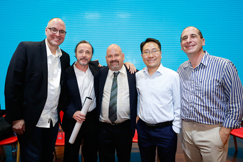 (图为上海温哥华电影学院常务副院长刘海波(右二)与好莱坞大师们合影)