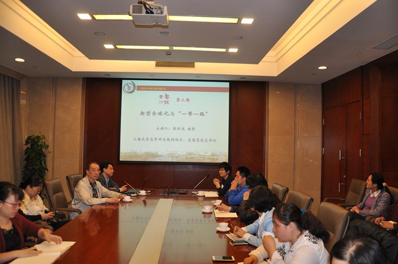 张恒龙首先从五四青年节的历史渊源谈起,与青年教职工一起回顾了五四运动波澜壮阔的历史画面。随后,张教授从三次“全球化”浪潮、中国经济发展的红利、世界经济新格局、中央经济工作中的“一带一路”战略等四个方面,全面解读了“一带一路”战略。在随后的互动中,张教授回答了“一带一路”与双一流建设,“一带一路”与青年成长等大家感兴趣的问题。