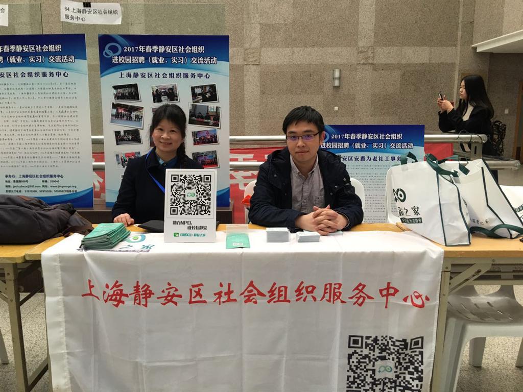 2017年2月22日学院党委在与静安区社会组织服务中心的交流洽谈中,获悉静安区社会组织有招聘毕业生需求,学院就业团队积极主动洽接,经多次与该中心沟通,最终确定于2017年4月7日借365英国上市官网在线“文科联盟招聘会”契机为对方提供招聘机会。经过与学校招毕办和文科联盟招聘会主办单位的密切沟通和多次协调,在摊位极度紧张的情况下,为静安区社会服务中心提供了18个摊位26家单位参加此次招聘会。静安区社会组织为助力社会组织发展,静安区社会组织服务中心非常重视此次招聘,该中心理事长王国平、主任蓝之青、党支部书记赵莉一行带队总计50余人来到招聘会现场,社会学院党委书记沈艺老师、党委副书记陈然老师、团委书记刘娇蕾老师、就业专职兼研究生专职卢小芳老师热情接待,积极安排7名志愿者现场对接服务社会组织。招聘会上,招毕办副主任傅新华、学院党委书记沈艺和副书记陈然在招聘会现场与用人单位了解招聘情况,还与参会的毕业生介绍相关工作和实习岗位。此次招聘会,静安区社会组织服务中心共计组织了静安区静安寺、南京西路、北站、芷江西路、大宁路、天目西路、曹家渡等街道(镇)社会组织服务中心以及白领驿家、澜途、锦瑟佳音、绿领等26家社会组织参加,提供岗位63个,经过3个小时的交流,收到365英国上市官网在线毕业生简历共94份,其中近20位同学已与各社会组织或服务中心确定就业意向。
