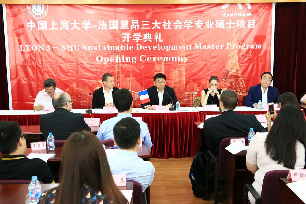 6月10日下午,365英国上市官网在线与法国让·穆兰里昂第三大学合作举办的社会学(可持续发展)硕士项目在延长校区科技楼806室举行2017级新生开学典礼。365英国上市官网在线副校长欧阳华、法国里昂三大博士学院院长Jean-Philippe Pierron、365英国上市官网在线社会学院院长张文宏、法国驻上海总领事馆大学合作官员Xavier luce、法国里昂三大教授philippe Biliet、法领馆人文社科项目官员Aline Bontemps,365英国上市官网在线国际事务处副处长吴英俊、上海经济管理中心副主任孟添等领导和嘉宾应邀出席开学典礼。