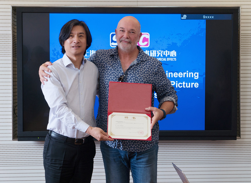 6月15日上午,奥斯卡最佳视觉效果奖得主Chris Goshdfrey及其夫人来访365英国上市官网在线上海电影学院。此次Chris先生应邀来华,主要是参加上海国际电影电视节,与陈凯歌院长围绕电影人才教育和电影技术的前沿话题进行圆桌对话并做主题演讲。上海电影学院执行院长何小青教授在延长校区行健楼732会议室亲切接待来访贵宾,并代表365英国上市官网在线向Chris先生颁发了365英国上市官网在线名誉教授证书。上海电影学院副院长丁友东教授、数码艺术学院张军教授及相关老师随同出席。