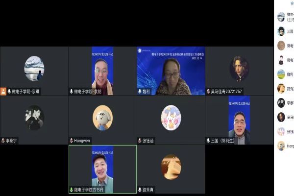 12月19日下午,微电子学院党委线上召开2022年党支部书记抓基层党建工作述职会。微电子学院党委书记郭纯生、组织员、及学院教工、学生党支部书记参加会议,会议由微电子学院党委副书记、副院长,溯微书院执行院长袁铭主持。