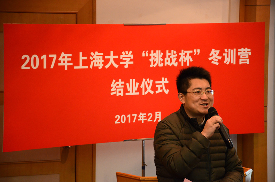 下午1点,2017年“挑战杯”冬训营结业仪式在J103顺利举行。校党委副书记、副校长徐旭,校学生工作办公室主任胡大伟,校团委书记许烁以及各学院备战“挑战杯”的重点项目团队成员参加结业仪式。