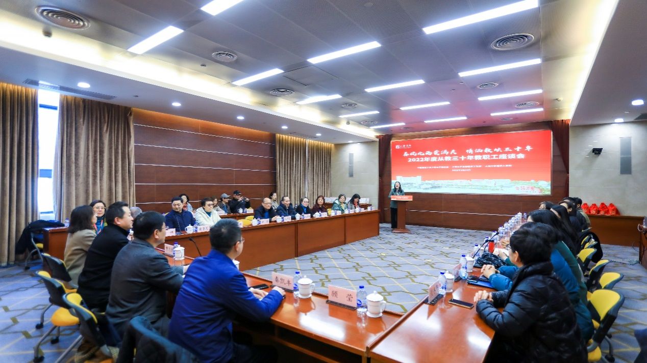 校党委副书记、工会主席欧阳华,校党委常委、统战部部长、教师工作部部长曹为民,校党政办公室主任、政策研究室主任秦凯丰,校组织人事部副部长、人事处处长刘丽兰以及从教三十周年教师代表、相关职能部处、学院(系统)党组织领导及分工会主席等近50人出席座谈会。座谈会由校工会常务副主席、妇委会常务副主任顾莹主持。