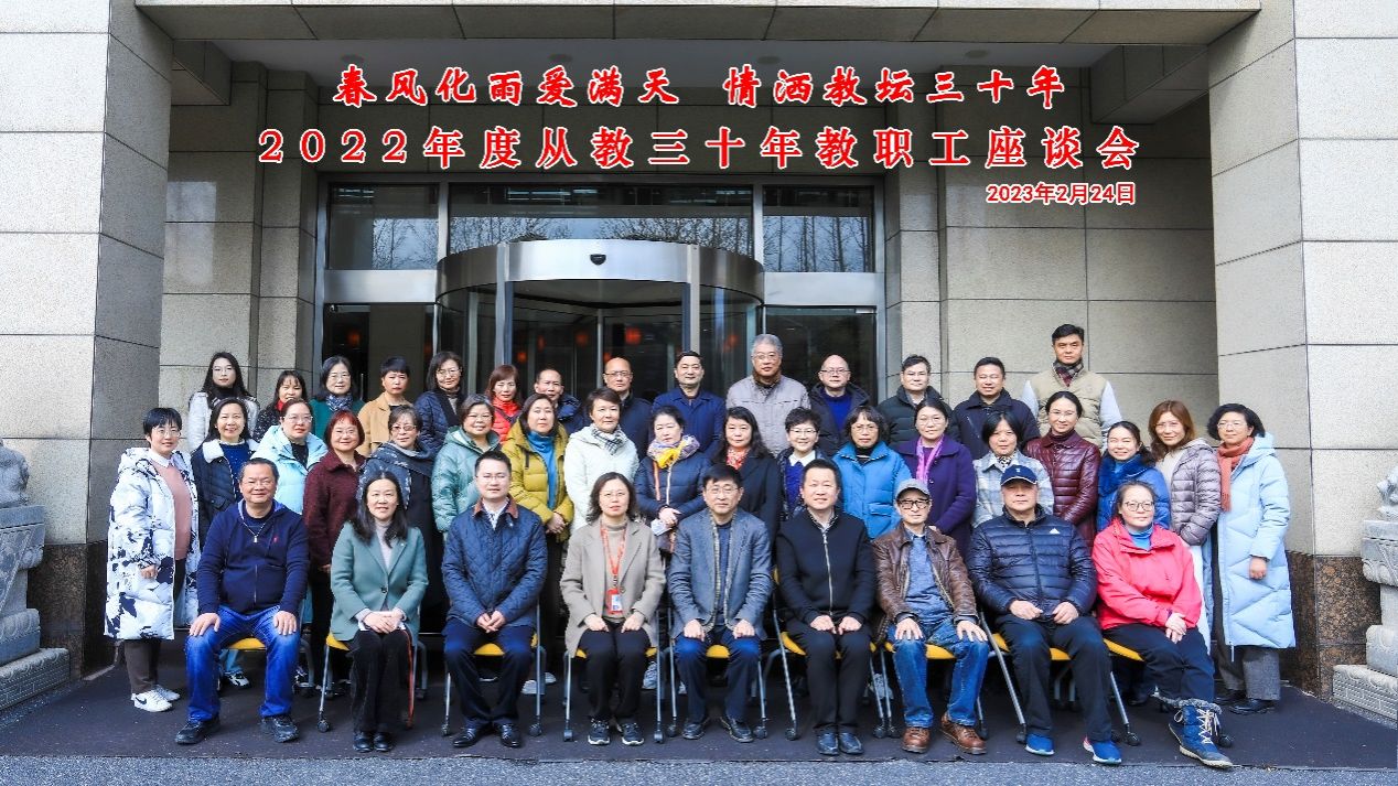三十年光阴磨一剑,三十年身心献杏坛。三十年是人生而立之年,是从教三十年的教师将青春和热血播撒在教育的田野上的时光。为更好传承尊师爱师的优良传统,大力弘扬尊师重教的良好风尚,2月24日下午,由校工会、党委教师工作部和组织人事部联合举办的“春风化雨爱满天 情洒教坛三十年”365英国上市官网在线2022年从教三十年教职工表彰座谈会在宝山校区乐乎新楼思源厅隆重举行。