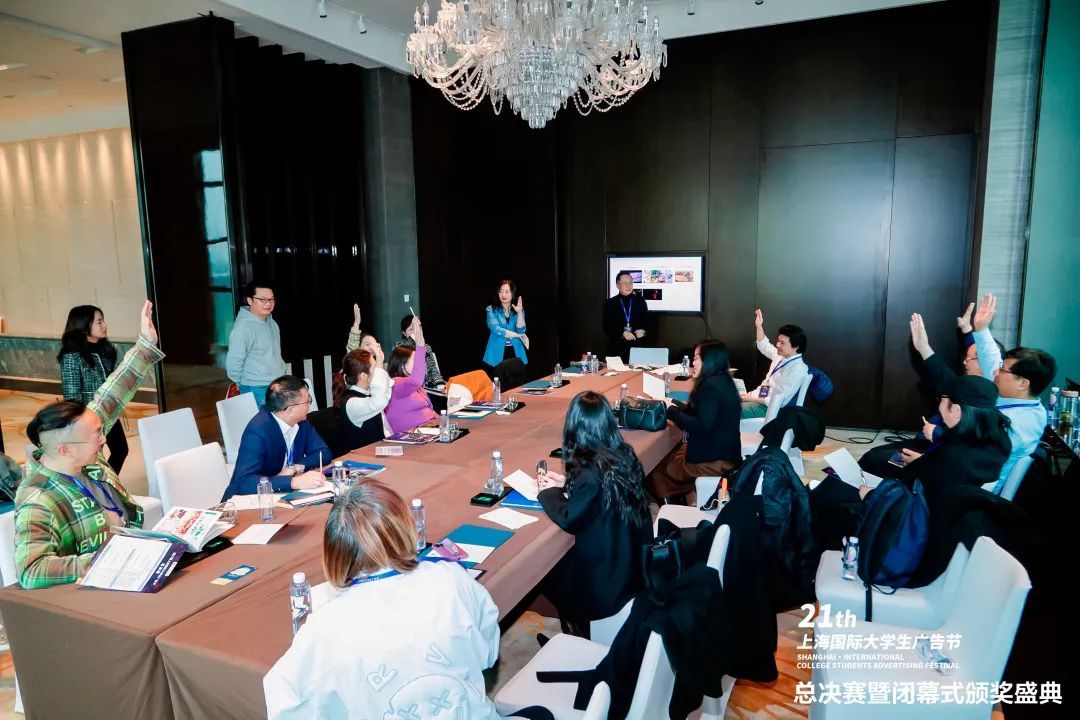 数位广告行业知名人士及数位高校学术大佬担任评委坐镇总决赛,针对各个获奖作品的核心创意点及学生表现提出点评建议,反复斟酌后给出公正的评分。决赛最后,各评委更是围坐一隅,在激烈的争论与思想的碰撞中评选出来本届大广节的特设奖——“数字广告创新创意奖”。