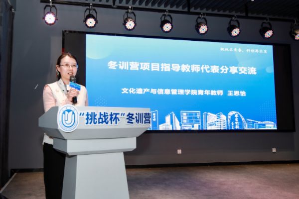 项目的不断推进离不开指导老师们的点拨,而青年教师在创新人才培养中更是起着至关重要的作用。计算机工程与科学学院岳晓冬老师和文化遗产与信息管理学院王思怡老师作为教师代表发言。从青年到青年教师,一点点的经验沉淀使他们实现了从追梦者到引路人的蜕变。他们用专业素养向学生传授解决问题的方法论,用身体力行让学生明悟青年人的担当,热切期盼着每一位新青年保持纯粹的科研初心,不惧挑战、锐意创新,接下新时代的委任状。