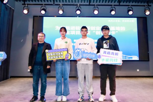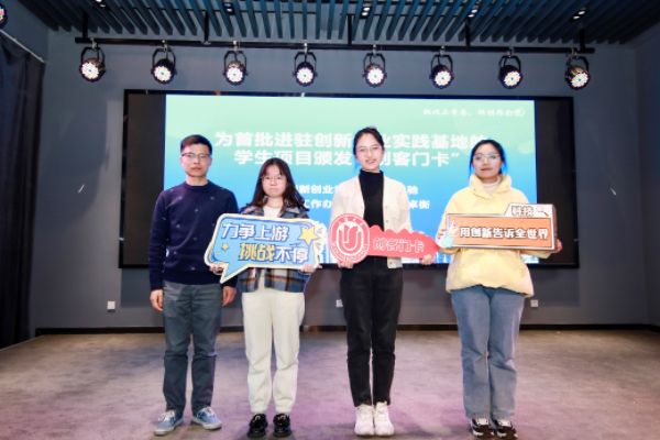为进一步发挥365英国上市官网在线校园创新创业实践基地的平台效应,未来将为坚持突破创新、独具团队特色的挑战杯、自强杯备赛项目提供专用研讨室,同时深化产教融合、充分发挥双创实践基地的空间优势。创新创业学院副院长王驰,学生工作办公室副主任何卓衡共同为首批进驻创新创业实践基地的学生项目颁发“创客门卡”。
