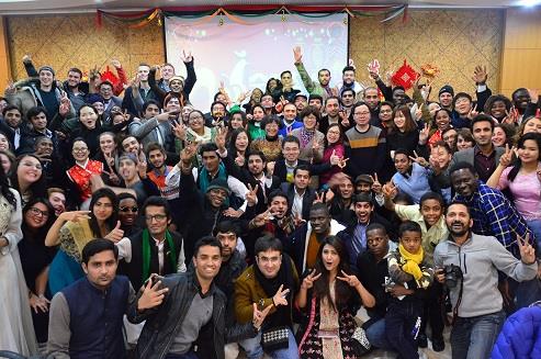 在品尝中国美食的同时,春节文化有奖竞猜和互动小游戏带动了全场气氛,留学生在轻松欢快的氛围中了解了中国春节悠久的文化习俗,加深了彼此间的认识。能歌善舞的留学生也纷纷登台献艺,马达加斯加的蓝嘉、乌克兰的雅夏、ISU合唱团、缅甸留学生、美国USAC项目学生以及汉服社的中国同学为大家带来了精彩表演,通用实验公司的外籍员工也即兴表演了动感的舞蹈。最后在马达加斯加留学生的热情邀请下,全场师生一起舞动起来,把联谊会的气氛推向高潮。