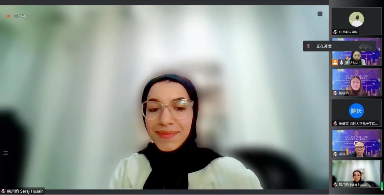 巴林大学孔子学院中方院长周倩雯作为特别嘉宾致辞,她指出:中国与海湾国家历来友好,文化交流与经济合作越来越紧密。来到巴林王国工作以后,我见识到了阿拉伯灿烂的文明、热情好客的人们和令人惊叹的世界遗产,我也对海合会国家之间密切的经济和文化联系深表赞赏,我希望通过这次项目,能加深海合六国成员们对中国的了解,未来能够有机会与各位成员线下见面,相聚上海,相聚中国。