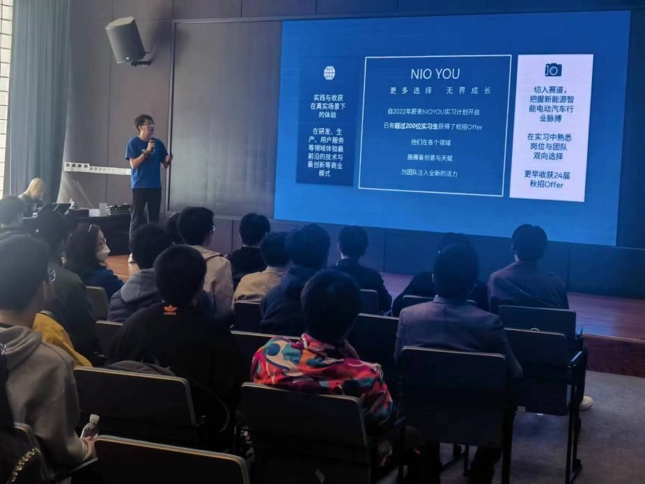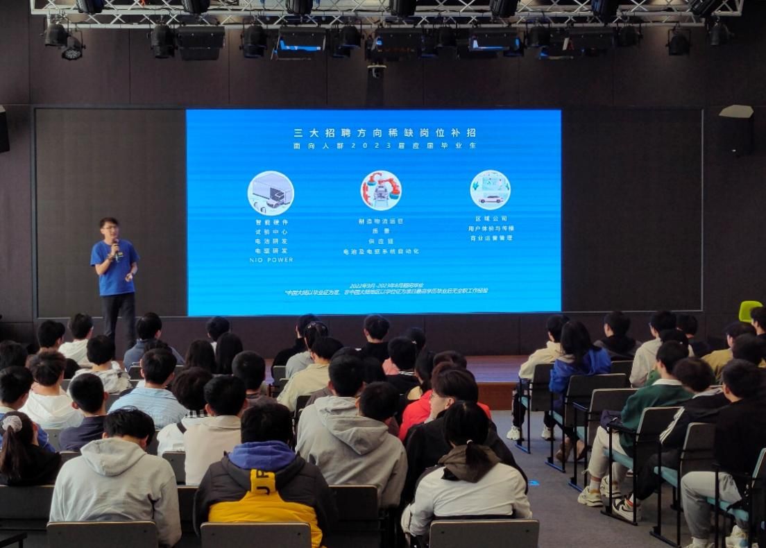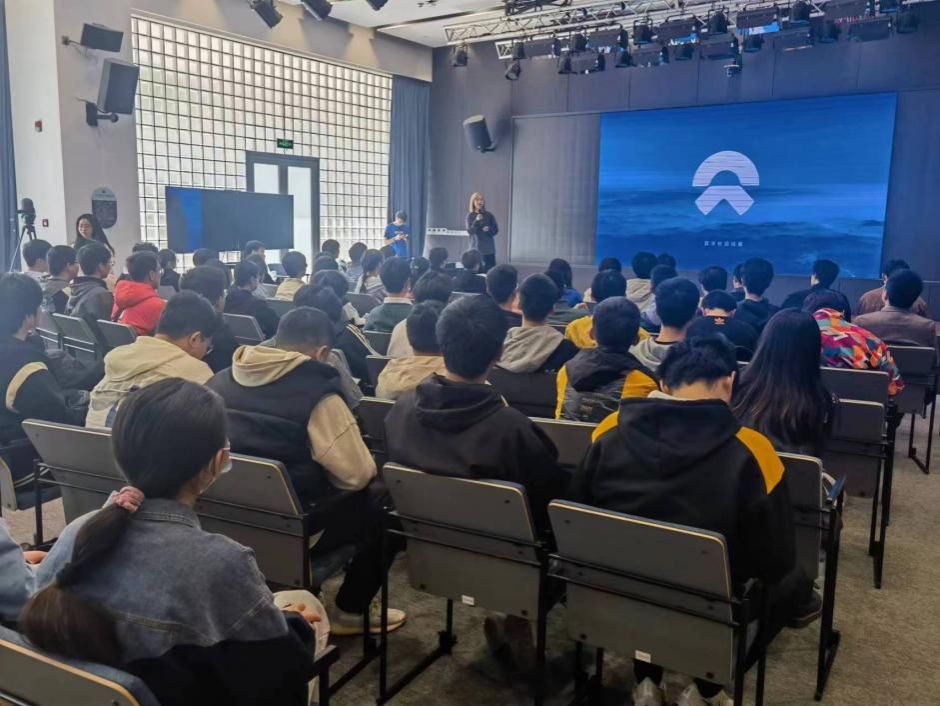 蔚来汽车相关负责人介绍了蔚来汽车的基本情况和发展规划,并从政策优势、技术积累、市场格局三个方面分析了智能汽车行业的发展优势,让师生们对蔚来汽车以及中国新能源相关企业形成深层次的了解。