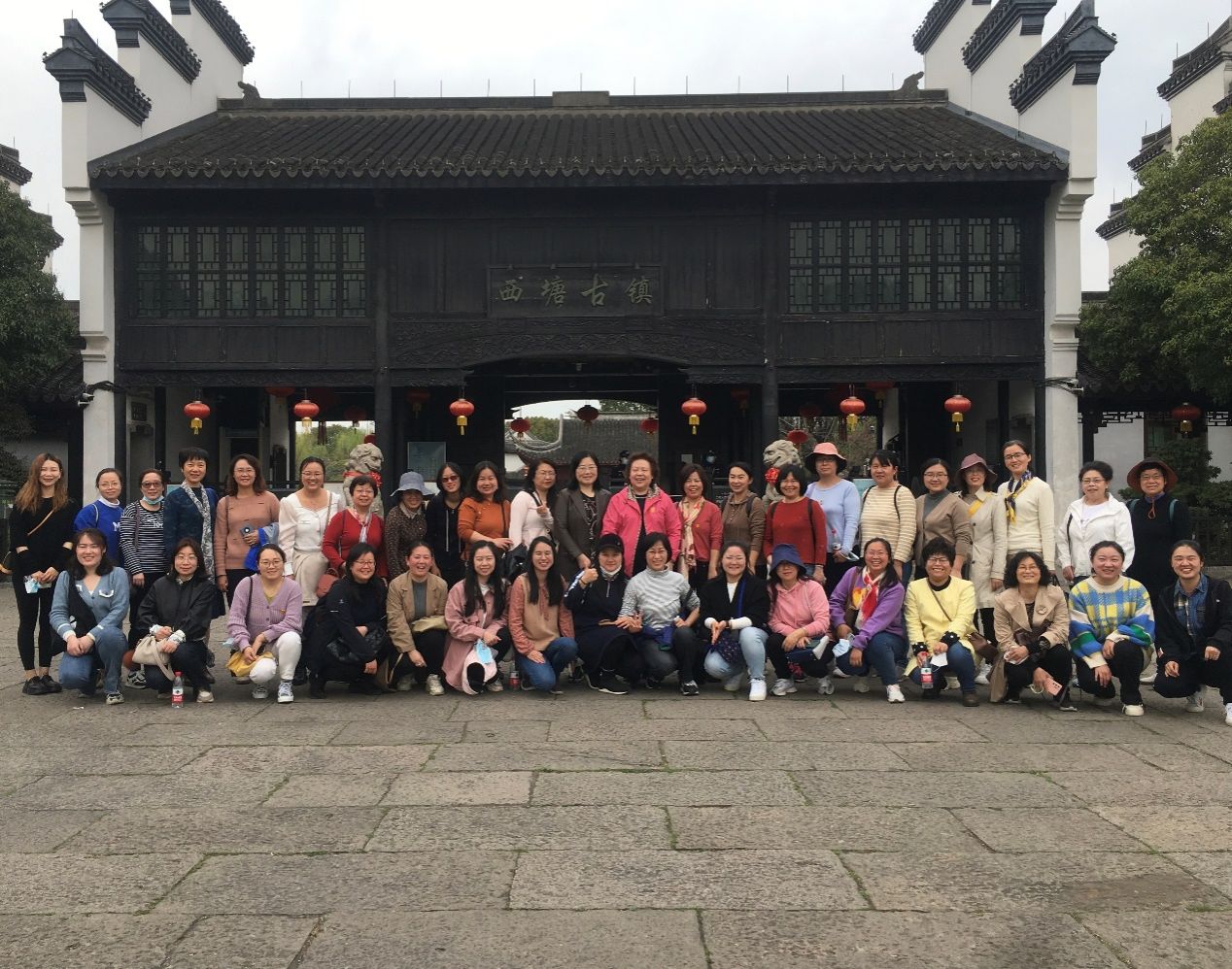 结束上善院的参观,大家又驱车来到千年古镇-西塘。西塘历史悠久,是古代吴越文化的发祥地之一,国家5A级景区。这里有大小24座石桥,大多保护完整,2000多米的烟雨长廊是西塘最独特的标志,同时还拥有中国纽扣博物馆以及明清木雕馆等众多特色景馆。小桥流水人家,亭台楼阁雀声,老师们三三俩俩漫步在河岸边,偶尔见几位穿着汉服的小姐姐穿梭在石板路上,仿佛穿越到了古代。大家在美景的感染下,纷纷拍照留念,记录美好的瞬间。在紧张的科研工作之余,材女们一起感受江南水乡的秀丽风光,真是心旷神怡。