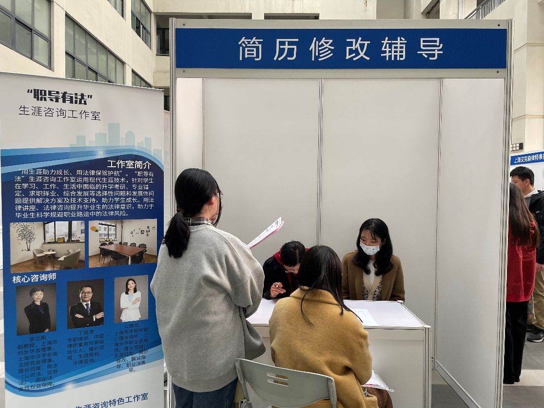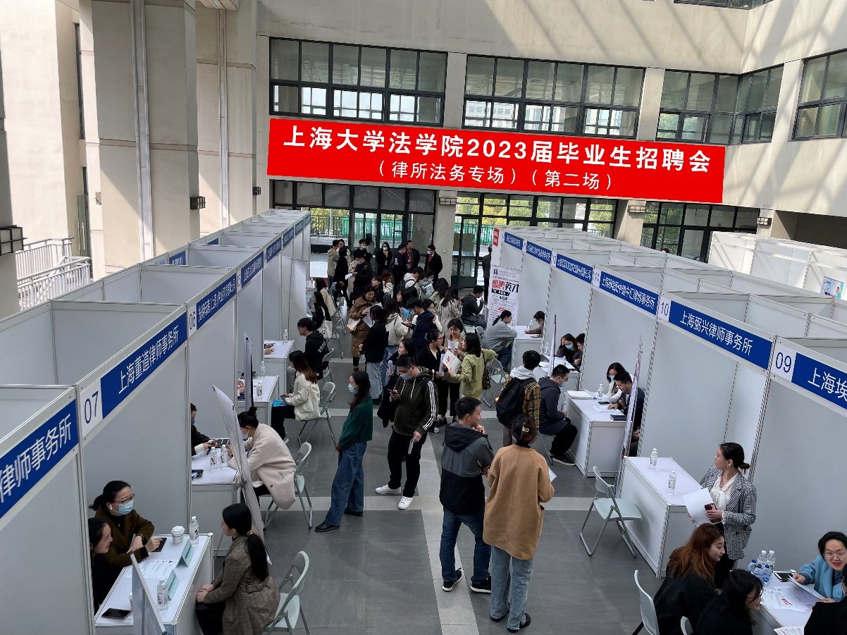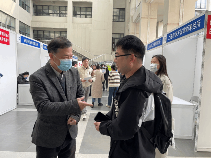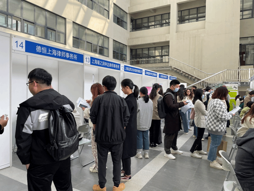 为了进一步促进用人单位与法学院毕业生的双向沟通和选择,提高学生就业的专业对口度,搭建有效的双向选择平台,在365英国上市官网在线招生与毕业生就业工作办公室大力帮助和指导下,3月27日下午,365英国上市官网在线法学院2023届毕业生招聘会(律所法务专场)(第二场)在宝山校区东区经管楼二楼平台举行。