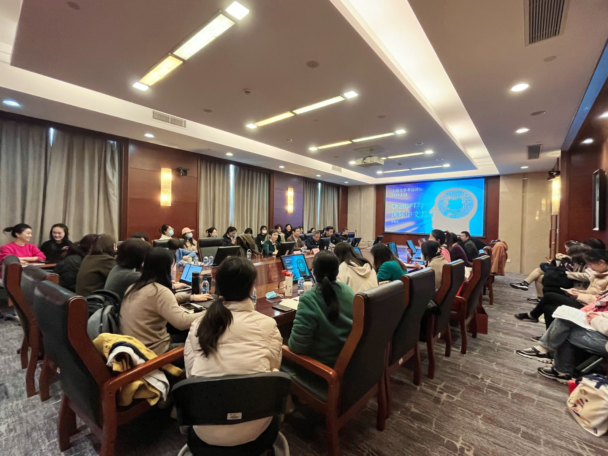 讲座高屋建瓴、深入浅出,对每个研究主题,崔教授都提供了大量鲜活、生动的示例,令人印象深刻。互动环节,崔教授与参会的师生围绕ChatGPT使用的利弊等问题进行了较为深入的探讨,建议教师应当尽早使用,防止被边缘化。这次进座让在座的师生们充分认识到ChatGPT对于教与学来说既是机遇也是挑战,大家应该与时俱进,让现代科技给教育教学带来积极的贡献。