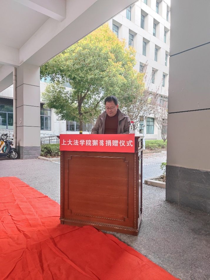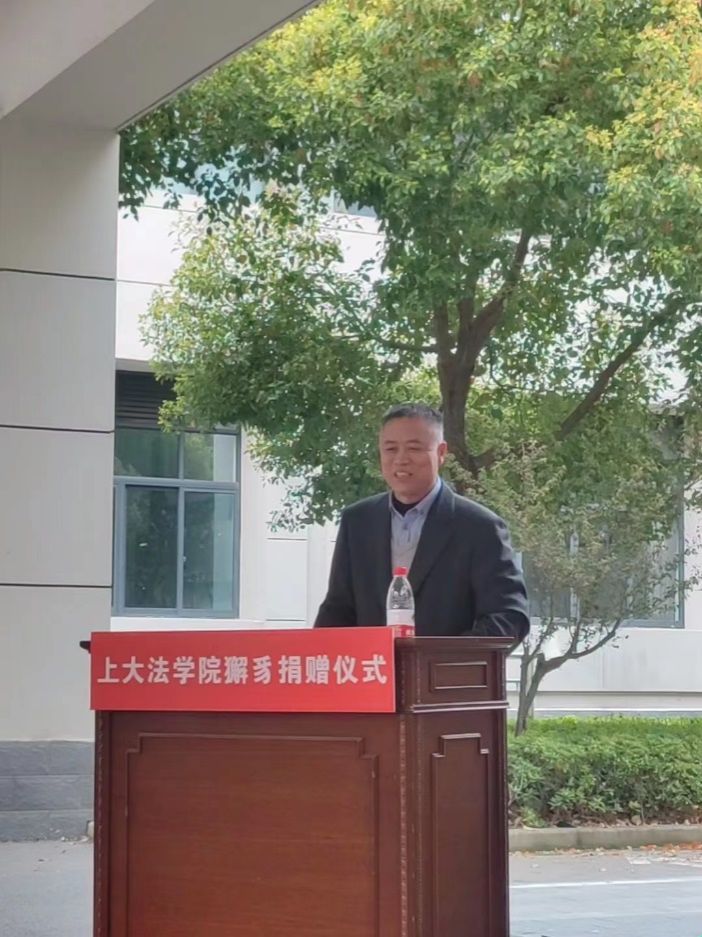 獬豸雕塑捐赠仪式在热烈的掌声中圆满落幕。作为中国传统法律文化的象征,獬豸彰显着“中立、公正、独立、民主、效率、公开”的现代司法理念,在全国不少法学院校中均有獬豸雕塑。本次獬豸雕塑的捐赠,将进一步浓郁和彰显法学院的学科特色和文化氛围,激励学院师生为法治中国建设做出更大的贡献。