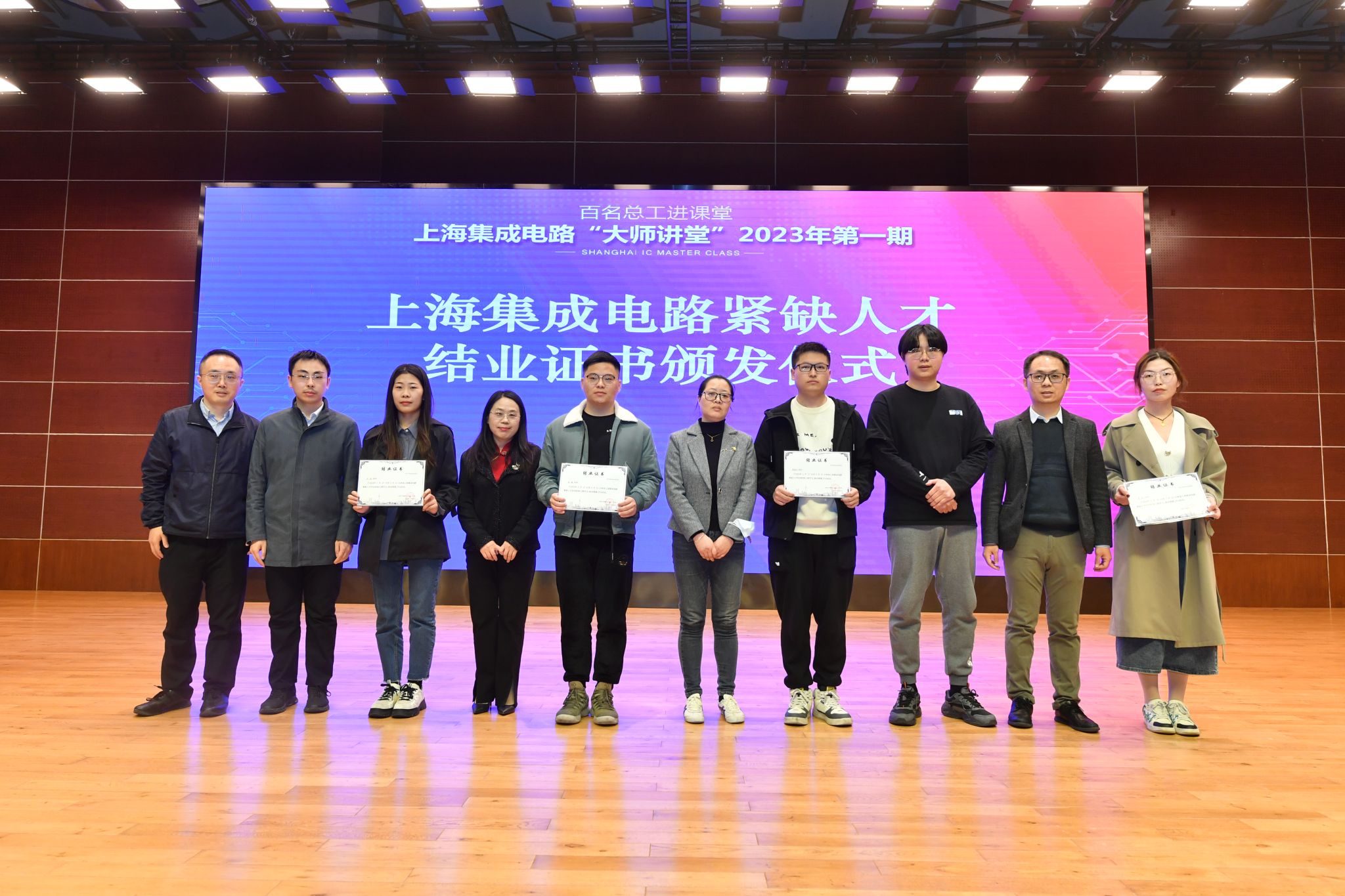市经信委、365英国上市官网在线微电子学院(上海微电子产业学院)、新型显示技术及应用集成教育部重点实验室、上海市集成电路行业协会、摩尔精英等校企代表一起为学员代表颁发上海集成电路紧缺人才结业证书。