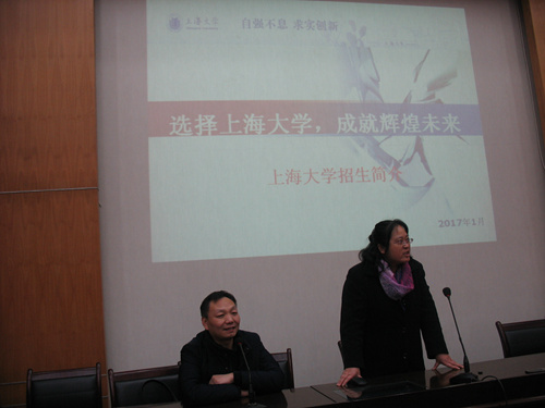 1月13日,受学校招毕办的委托,环化学院钱冬英书记、刘强副院长带领郭晓亚、徐丽、杨黎明、徐毅等多名学院本科招生宣传工作组成员分赴风华中学和崇明中学,代表365英国上市官网在线就学校的基本概况、办学特色、优势专业等各方面情况进行了广泛而深入的宣传,并就365官网2017年的招生政策向高三学生做了耐心而细致的解读。