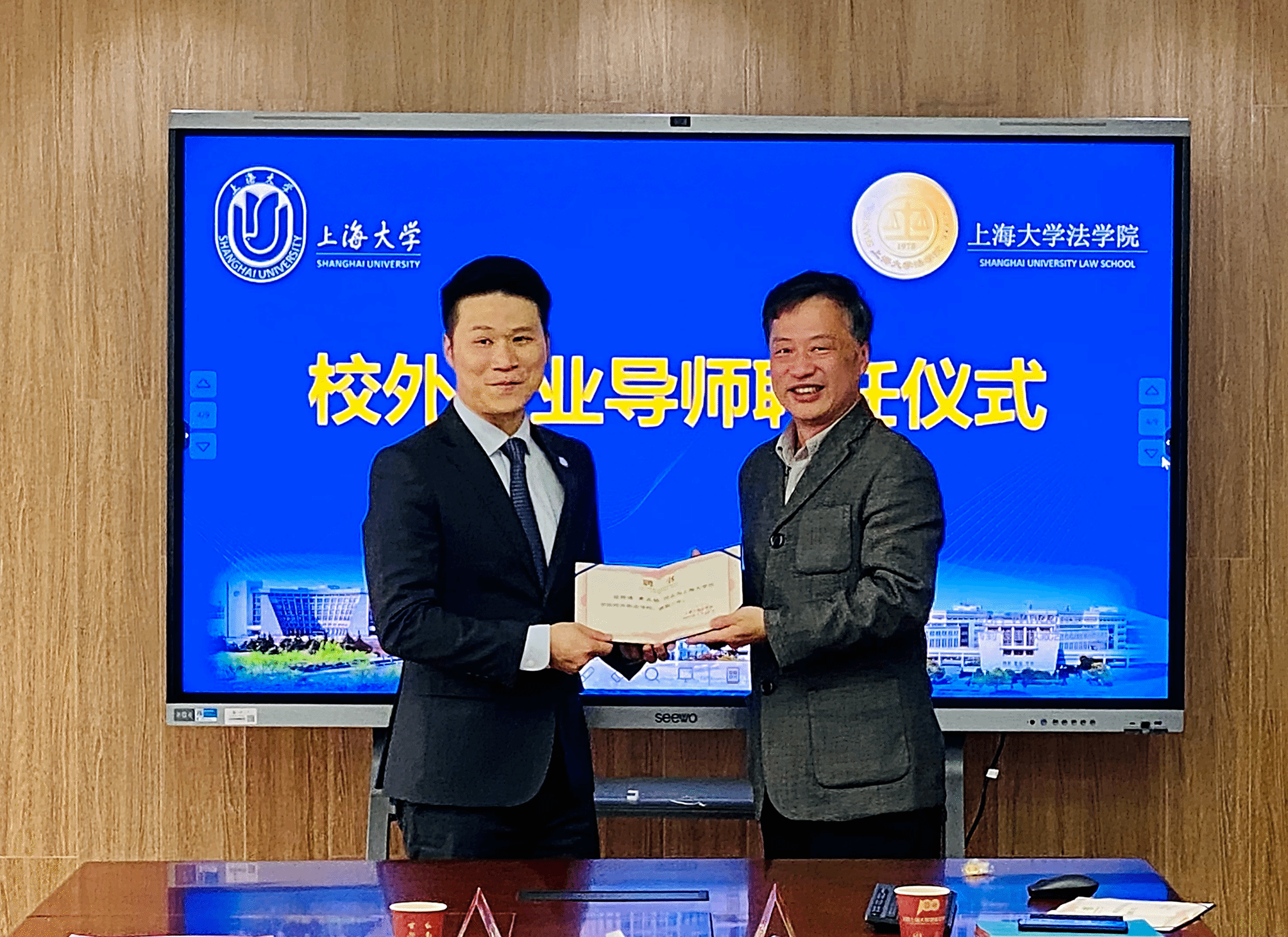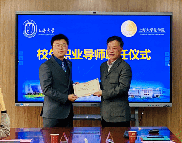 4月3日下午,“尚法·正泓诚基金”捐赠暨校外职业导师聘任仪式在365英国上市官网在线宝山校区东区法学院304会议室顺利举行。出席仪式的有北京盈科(上海)律师事务所股权高级合伙人、管委会委员、民事法律事务部主任沈诚律师,北京盈科(上海)律师事务所股权高级合伙人、管委会委员、民事法律事务部副主任黄正桥律师,北京盈科(上海)律师事务所股权高级合伙人、管委会委员、民事法律事务部副主任金泓毅律师,北京盈科(上海)律师事务所陈佳奇律师、贾宇婉律师、刘小迪律师助理,365英国上市官网在线对外联络处副处长、校友会办公室副主任杨静,法学院党委书记徐国明,党委副书记、副院长于伟,办公室主任江晓双,团委书记林建玲,团委副书记杨晓彤。与校外职业导师结对的9名2021级研究生参加了仪式。仪式由法学院党委副书记、副院长于伟主持。