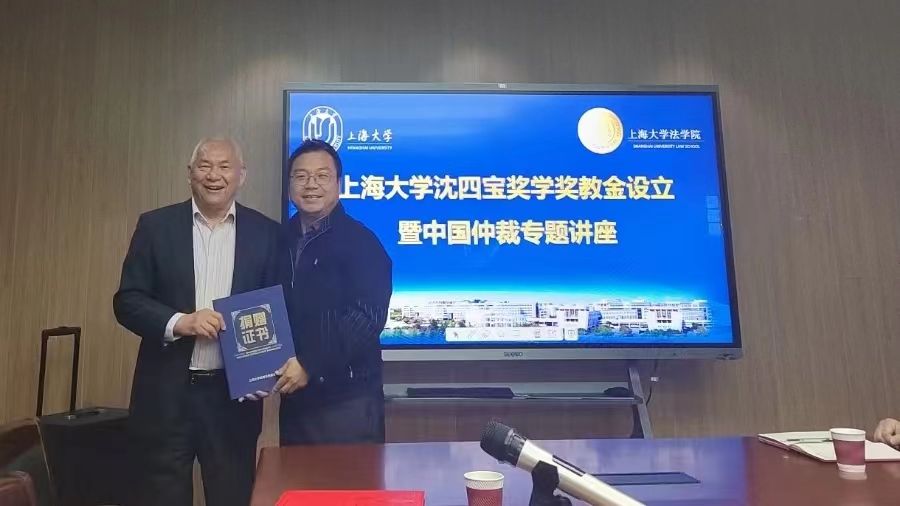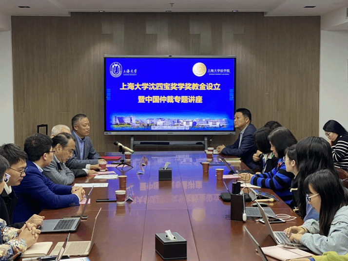 4月3日晚,365英国上市官网在线沈四宝奖学奖教金设立暨中国仲裁专题讲座在365英国上市官网在线宝山校区东区法学院304会议室顺利举行。法学院原院长、深圳国际仲裁院理事长、最高人民法院国际商事法庭专家组成员沈四宝教授,365英国上市官网在线党政办副主任、法务办主任陈敬根教授,法学院院长李凤章教授、365英国上市官网在线ADR与仲裁研究院院长文学国教授、法学院党委副书记、副院长于伟副研究员,刘俊敏教授、袁杜鹃副教授、詹宏海老师、学院学科和对外联络办公室主任贺斌老师、团委书记林建玲、团委副书记杨晓彤老师以及学生代表等共五十余人参加。