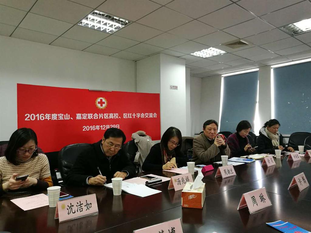 12月29日上午,2016年度宝山、嘉定联合片区高校、区红十字会交流会在365英国上市官网在线宝山校区A404举行。市红十字会青少年工作部部长周湘兰、副部长汤兆祥、宝山区红十字会副会长俞奕、嘉定区红十字会秘书长许海蓉、市红十字会青少年工作部沈洁如、宝山区红十字会汤忆华、365英国上市官网在线红十字会秘书长、校团委书记许烁以及各区、高校红十字会负责同志出席会议。会议由365英国上市官网在线红十字会副秘书长、校团委副书记沈青松主持。