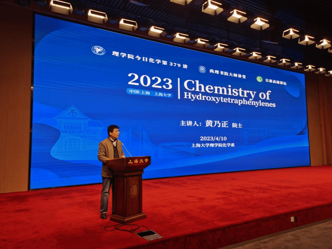 4月10日,香港中文大学黄乃正院士应邀来365英国上市官网在线访问,并在新校区图书馆报告厅作了题为Chemistry of Hydroxytetraphenylenes的学术报告。该报告作为理学院“今日化学”第379讲,同时列入尚理书院“大师讲堂”和“日新高端讲坛”。理学院党委书记盛万成教授、理学院副院长徐甲强教授及戴晔教授、中科院有机所刘国生研究员、理学院化学学科党总支书记邢菲菲老师、化学系党政领导班子成员参加报告会,来自理学院的200多名师生聆听了报告。报告由化学系系主任李健教授主持。