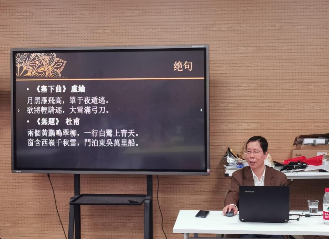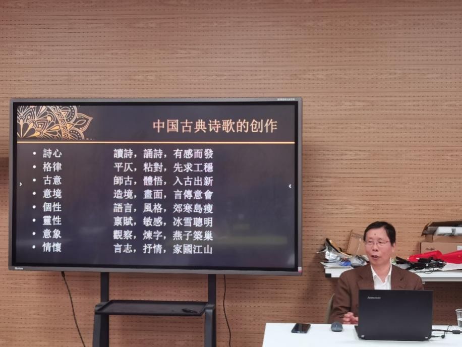 最后,崔老师与大家分享了近期自己的几首习作,有秋雨感怀、有与友人的唱和之作,也有敦煌之行的有感而发。老师们也积极互动,从诗歌的创作、字句读音及押韵、面向留学生的诗歌教学等方面向崔老师提问,双方进行了热烈、友好的讨论。