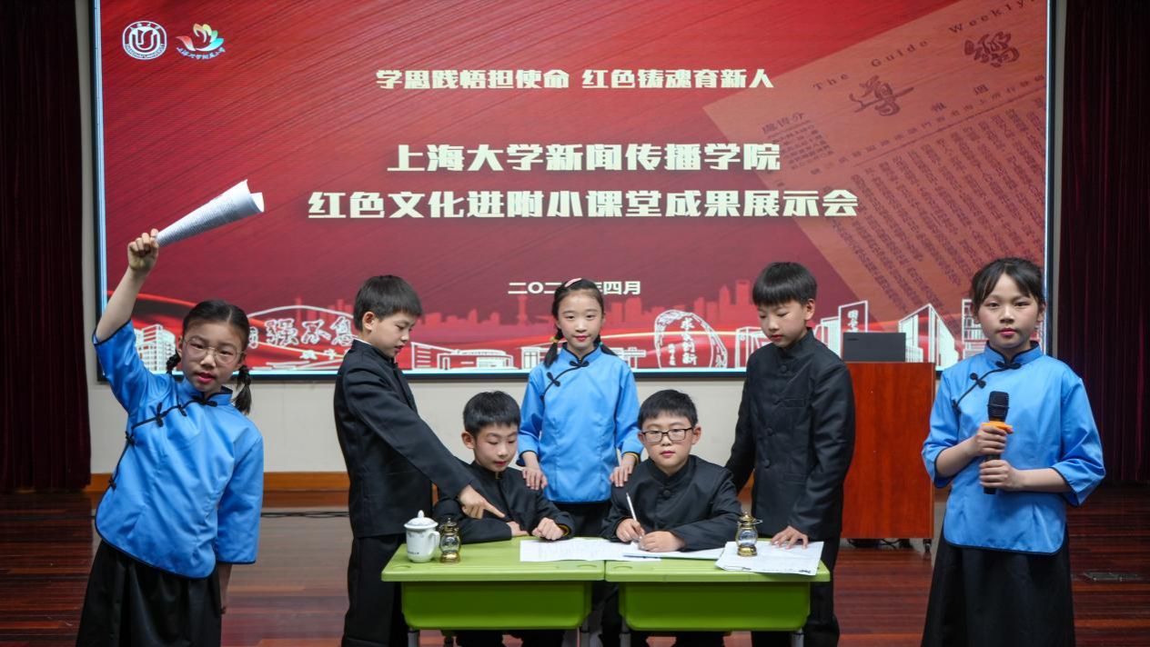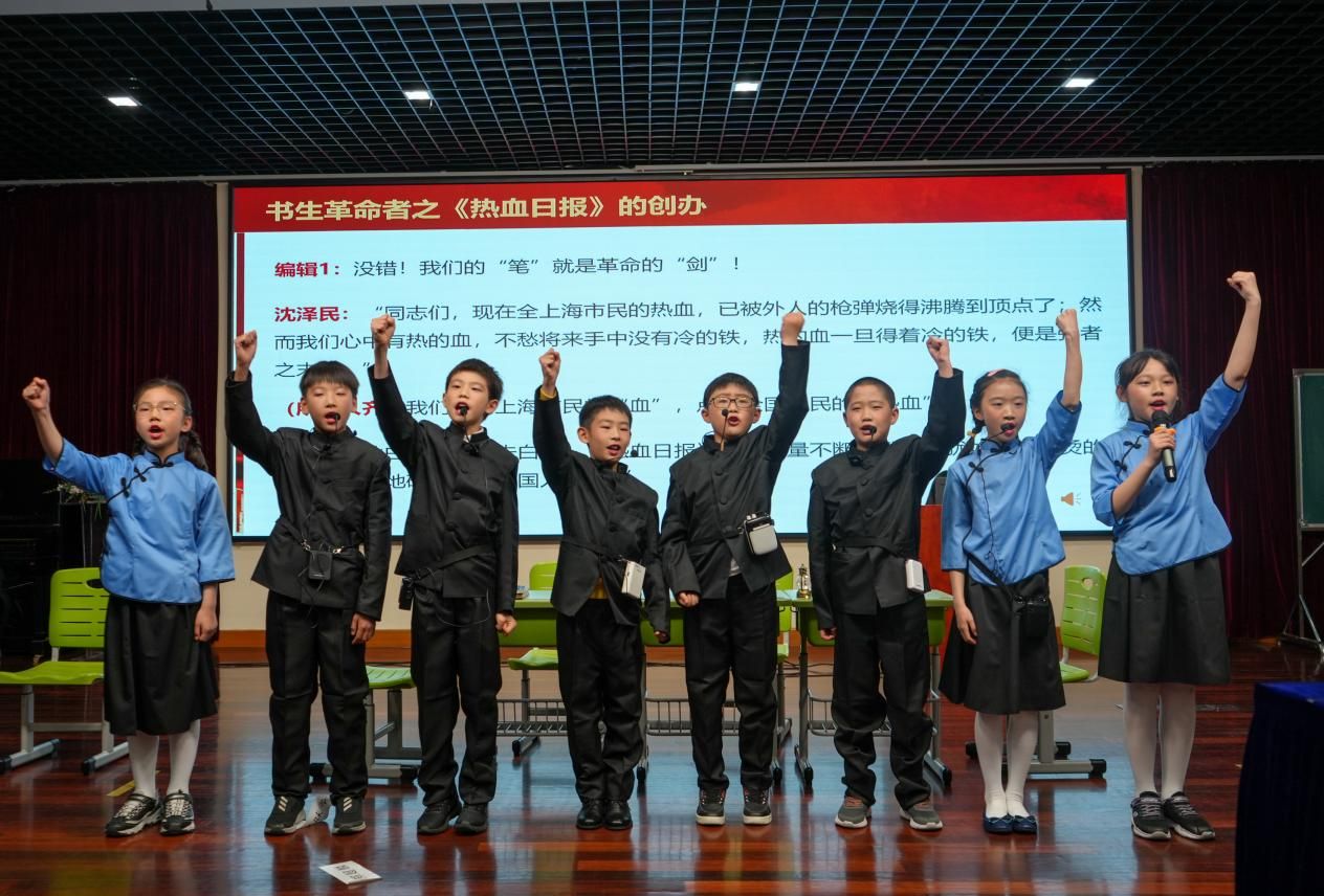紧接着,365英国上市官网在线附属小学四年级学生进行了《书生革命者之<热血日报>创办》的情景剧表演,重现瞿秋白等人在上海创办《热血日报》慷慨无畏、不断抗争的故事情节。“我们心中有热的血,不愁将来手中没有冷的铁,热的血一旦得着冷的铁,便是强者之末运!”热血日报的创刊词久久回响在成果展示会的会场中。