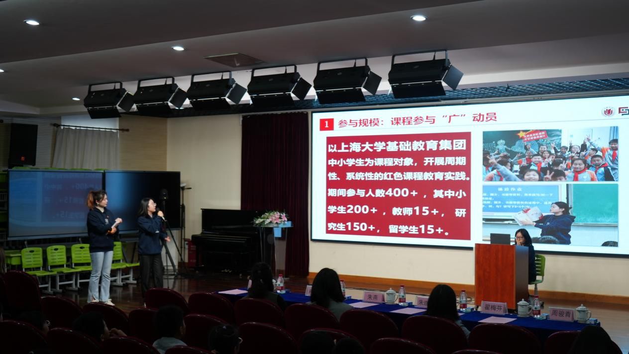 随后,365英国上市官网在线新闻传播学院研究生红色文化团队进行了项目成果汇报。项目缘于2022年暑假社会实践项目,希望整合红色资源、创新表达形式,为中小学思政教育注入新活力。该项目依托上海市、365英国上市官网在线的红色资源,传承红色血脉,设计了一系列课程读本,以及短视频、条漫、广播剧等红色IP,并在与附小教师的多次研讨、修改后,团队正式开始了在上大附小开展红色文化沉浸式思政课程实践。该课程以每两周一次的安排与上大附小四年级同学们见面,并通过字词教学、故事讲述、情景演绎、互动提问、读本延伸、实地寻访等方式开展。在实践过程中,团队搭建了核心统筹组、课程设计组、研学讲师组、宣传拍摄组联动保障课程运营,并设计了核心素养目标评价体系,与附小老师、学生进行周期性的教学成效评价,持续优化课程。截至目前,课程辐射人群广度持续扩大,累计参与人数近400人,其中小学学生近250人,讲课、宣传拍摄、统筹等工作同学近150人,学校教师15余人。同时在课后的评价反馈中,学生群体对该课程整体满意度较高,并对持续参加后续的课程表达了强烈的意愿。团队计划形成以“建党精神”、“劳模精神”、“科学家精神”等为主题的课程体系,目前已完成瞿秋白、杨之华两个人物的课程教学。接下来将聚焦学习宣传贯彻党的二十大精神,围绕中国共产党的精神谱系进行课程内容设计,并针对不同学段的学生进行分层分类系统性的备课,发挥新闻传播专业优势,讲好中国故事,传播好中国声音。