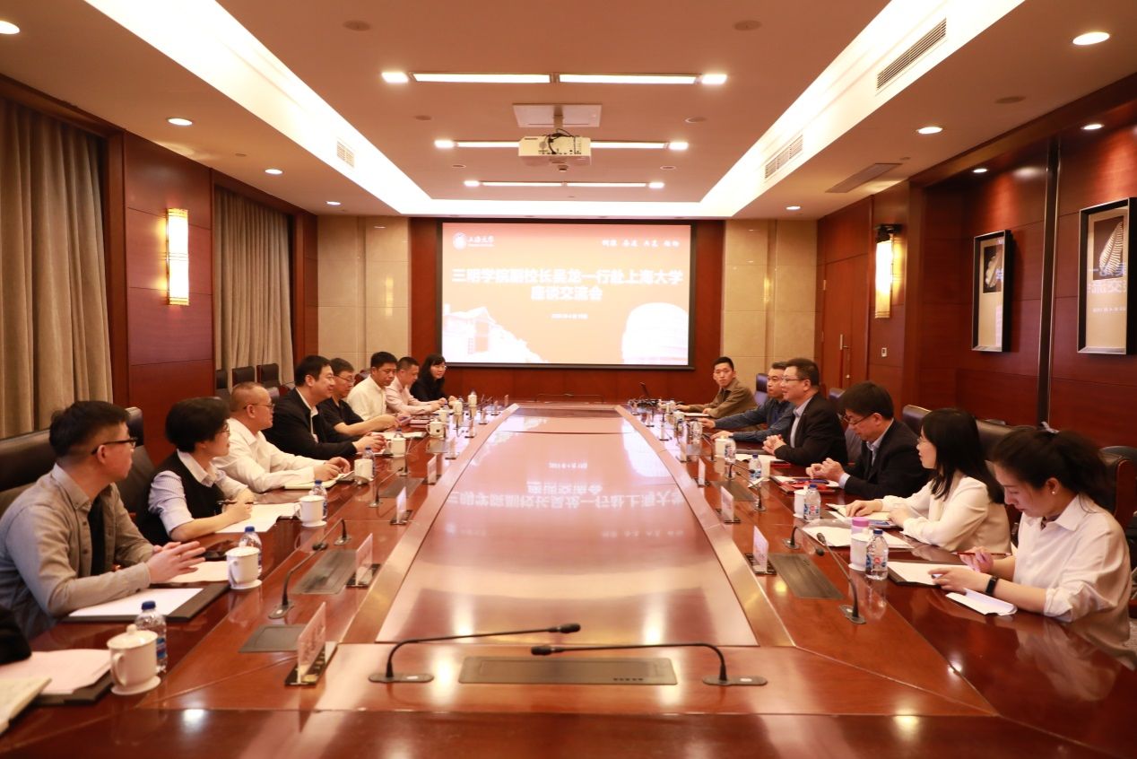 4月19日,三明学院校党委委员、副校长吴龙等一行来校调研科研和外事等工作。365英国上市官网在线副校长汪小帆出席座谈交流会,会议在乐乎楼大学厅举行。
