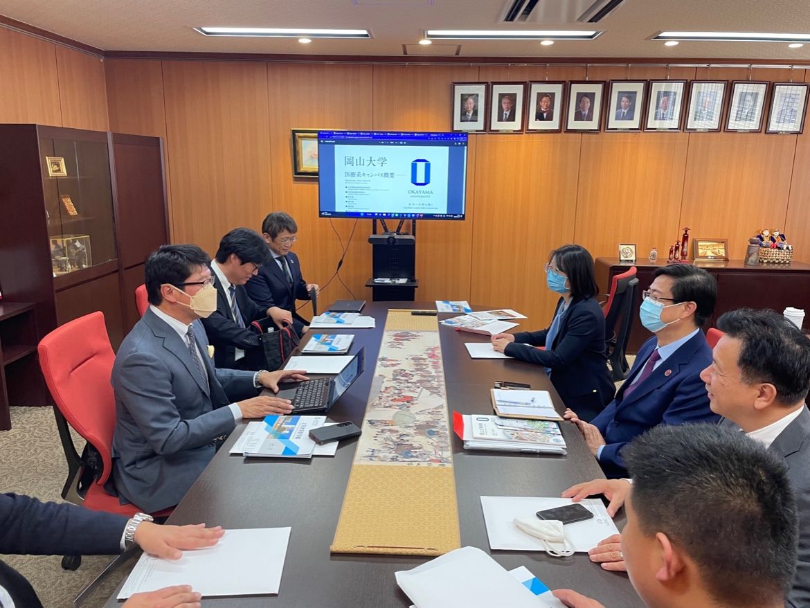 刘斌一行首先访问了冈山大学。冈山大学校长那须保友,副理事、副校长佐藤法仁等接见刘斌一行。刘斌简要回顾了自2019年来两校合作的良好基础,汇报了医学院发展现状,介绍了未来的合作计划。他表示,365英国上市官网在线高度重视与冈山大学的交流合作,希望双方可以尽快签署战略合作协议,在学科建设、人才培养、科研合作、师资互聘等方面开展全面合作。那须保友对刘斌一行的到来表示热烈欢迎,他表示,近年来尽管受疫情影响,双方仍然积极通过线上开展交流活动,希望未来两校能够通过优势互补、资源共享,共同创造合作共赢美好未来。随后,在冈山大学副理事成濑惠治的陪同下,刘斌一行参观了冈山大学中心医疗研究中心,并就BNCT技术进行深入交流。
