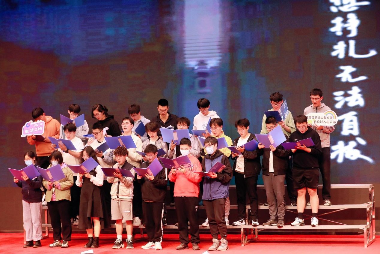 通信5班合唱朗诵《错位时空》,带领现场观众穿越回百年前的时空,和先辈们望着同一片天空,希望能像先辈一样,为中华民族的伟大复兴不懈奋斗。