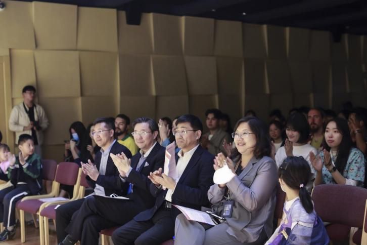 5月10日晚,知华导师“一带一路”音乐文化工作室组建的“海翼”国际学生合唱团在365英国上市官网在线音乐学院音乐厅成功举办了主题为“音乐无疆,美美与共”的各国文化音乐专场音乐会。本场音乐会是2023年365英国上市官网在线国际文化节的重要组成部分,将校园国际文化交流活动从白天的展台,延伸到了傍晚的舞台。365英国上市官网在线党委副书记欧阳华出席音乐会并致辞祝贺,音乐学院院长王勇,国际部党委书记王丽娜,国际部党委副书记、国际教育学院副院长陈秀猛,工作室指导教师许妍老师及中外师生到场参加。音乐学院党委副书记、副院长曹茜主持了本次音乐会。