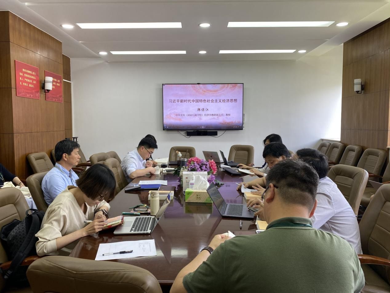 为拓展学习形式、丰富学习内容,学院党委理论学习中心组共同观看中央党校(国家行政学院)网络党课,由经济学教研部主任、教授韩保江主讲的《习近平新时代中国特色社会主义经济思想》,中心组成员分别结合《习近平著作选读(第一卷)》及网络党课的内容和实际工作交流谈体会。