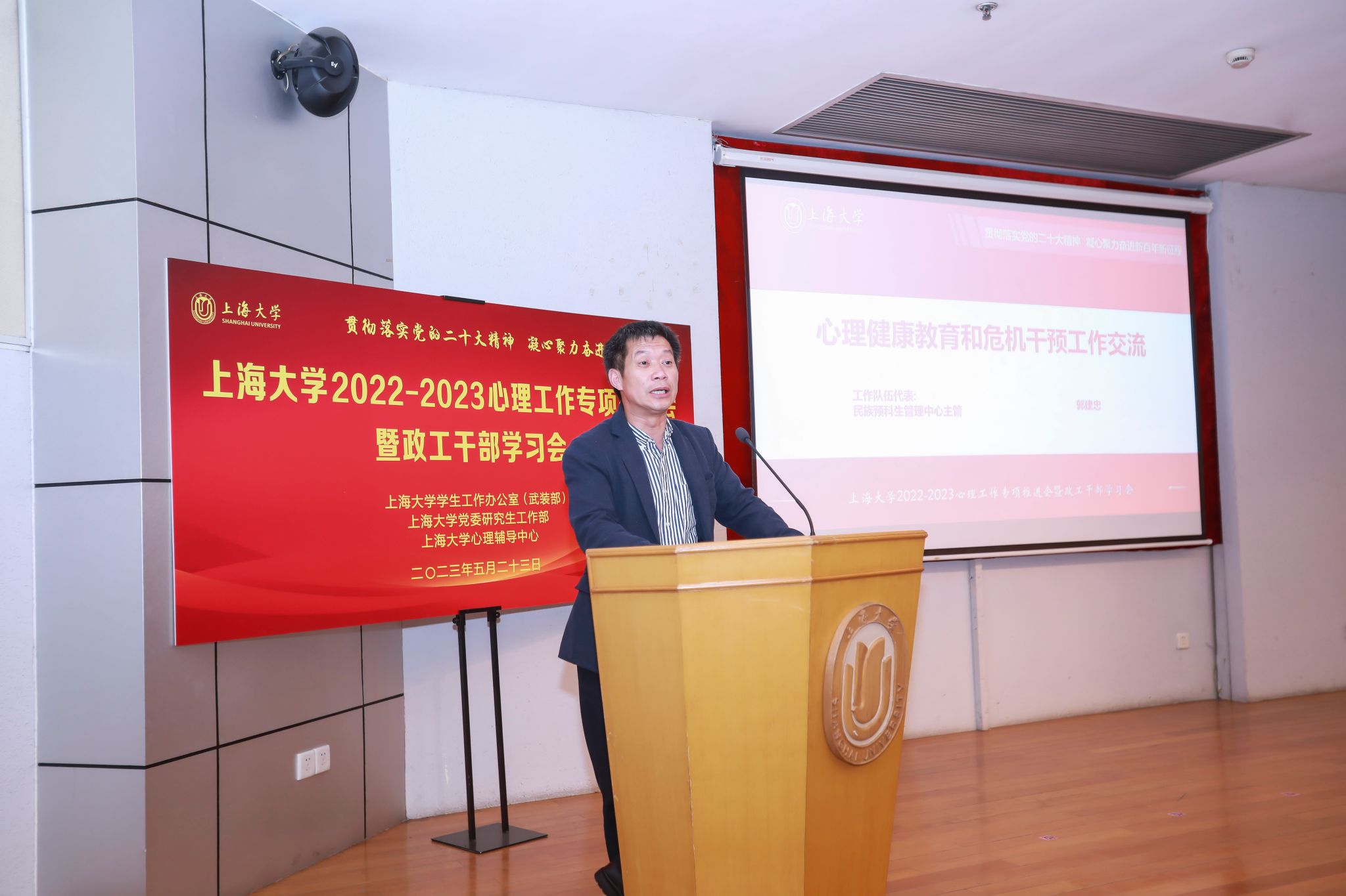 为贯彻落实党的二十大精神,进一步推进365官网学生心理健康工作,5月23日下午,365英国上市官网在线2022-2023年心理工作专项推进会暨政工干部学习会在行政楼报告厅举行。校党委常委、副校长聂清,学生工作办公室主任、武装部部长、本科生书院管理中心主任孟祥栋,体育学院党委副书记、院长刘兵,保卫处处长沈龙骥,校医院办公室主任周宏峰,心理辅导中心主任许静,各学院分管学生工作的党委副书记、副院长、全体本科生和研究生辅导员参加了本次会议。本次会议由党委研究生工作部部长魏宏主持。