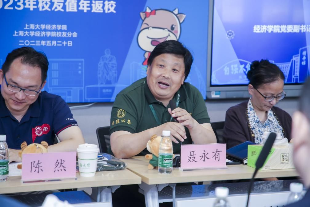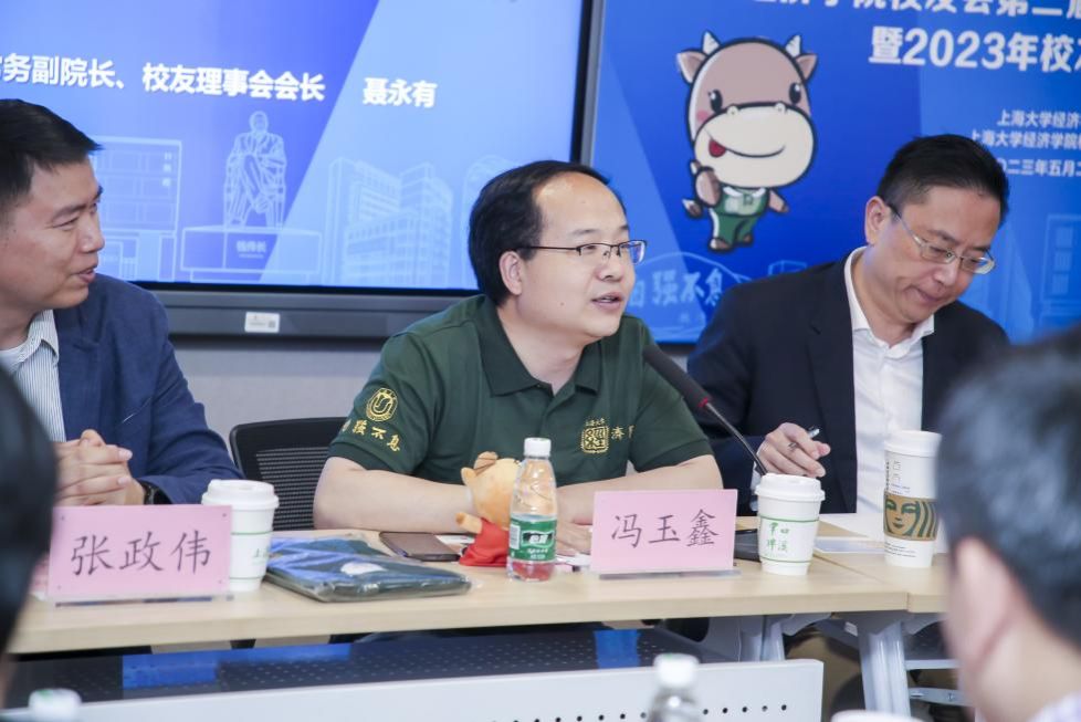 学院党委副书记、常务副院长、校友理事会会长聂永有致辞,他向所有关心关注学院发展的理事会成员和校友表示感谢,同时介绍了近年来上大经济学院学科建设的发展以及国际化校际合作的办学规划,并诚挚邀请各位校友回校、共同推动学院发展,再创经院辉煌。