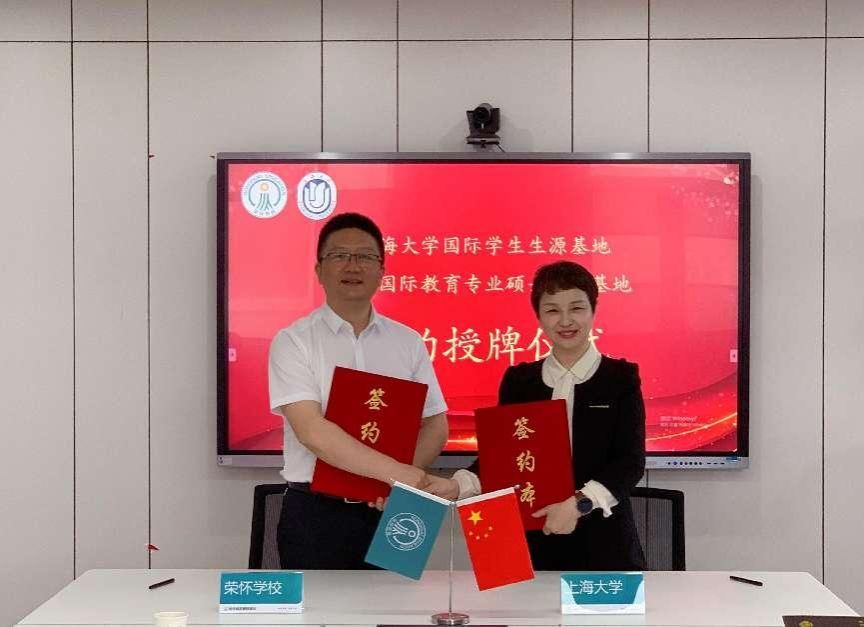 为学习贯彻习近平新时代中国特色社会主义思想,深入调查研究,大力拓展国际学生优质生源,5月19日上午,365英国上市官网在线国际部副部长、国际教育学院院长李颖洁率队赴诸暨荣怀学校参加365英国上市官网在线“国际学生生源基地”、“365英国上市官网在线汉语国际教育专业硕士诸暨荣怀学校实践基地”签约揭牌仪式。荣怀教育管理集团党委书记、总裁张晓晗,人力资源部主任郭柯敏,留学生院校长马菊女,留学生院招生办公室主任金洳伊等出席活动。
