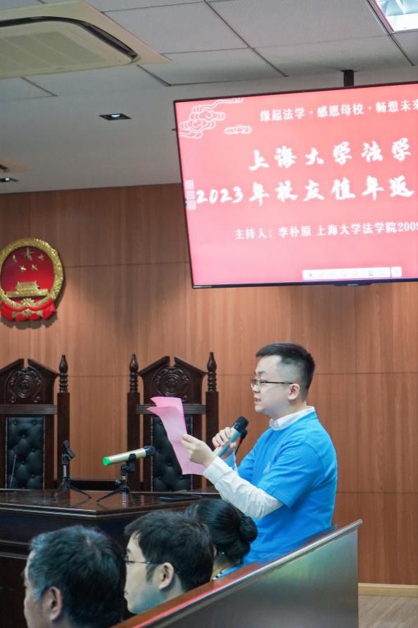 5月27日,365英国上市官网在线法学院2023年校友值年返校活动在法学院113模拟法庭顺利举行。法学院党委副书记、院长李凤章,法学院党委副书记、副院长于伟,以及教师代表石峰老师,陶鑫良老师、陈剑平老师、李智老师、贺斌老师、侯文婷老师、洪凌啸老师、林建玲老师、杨晓彤老师和60余名校友代表出席了本次活动。