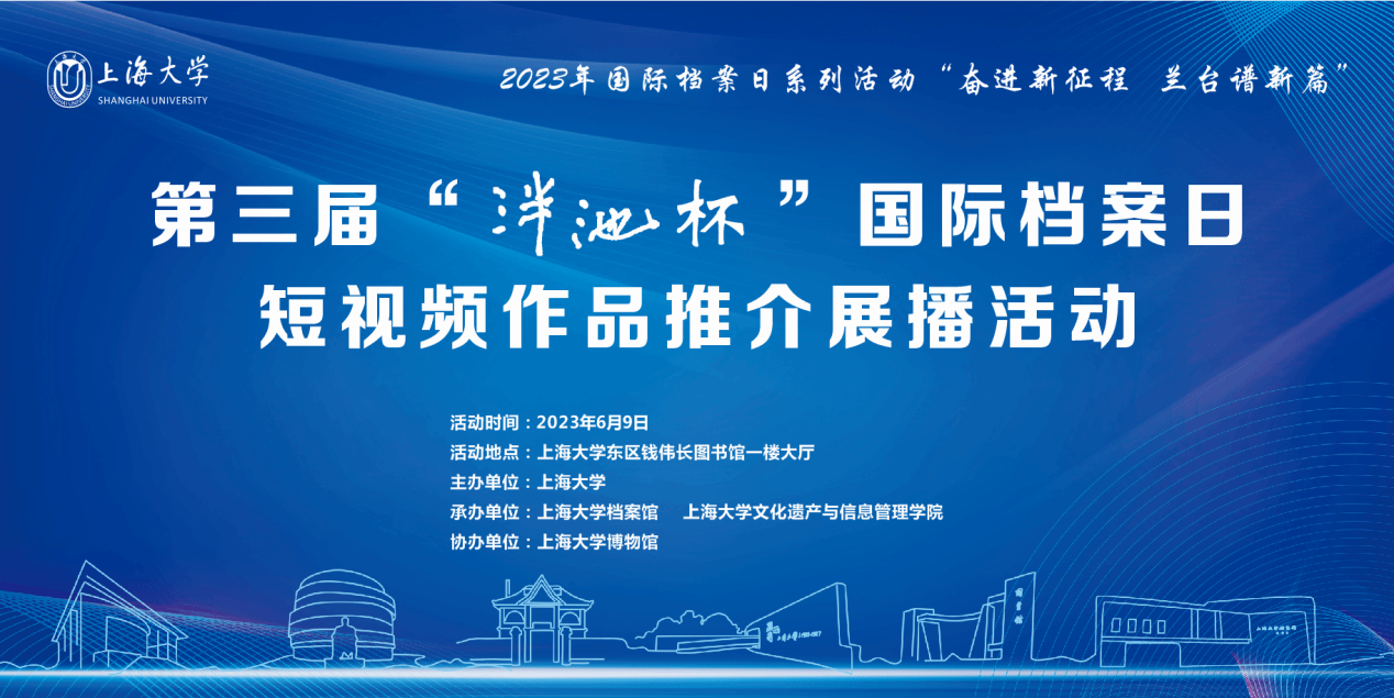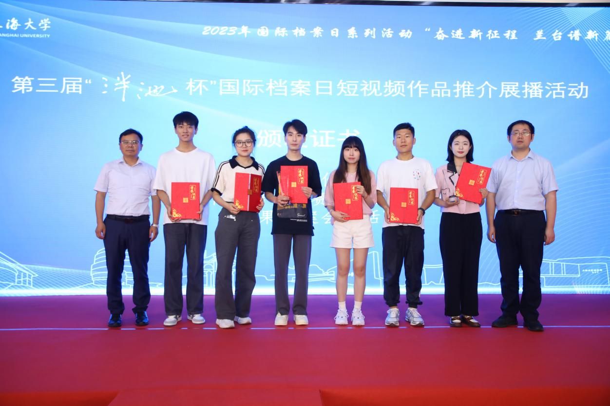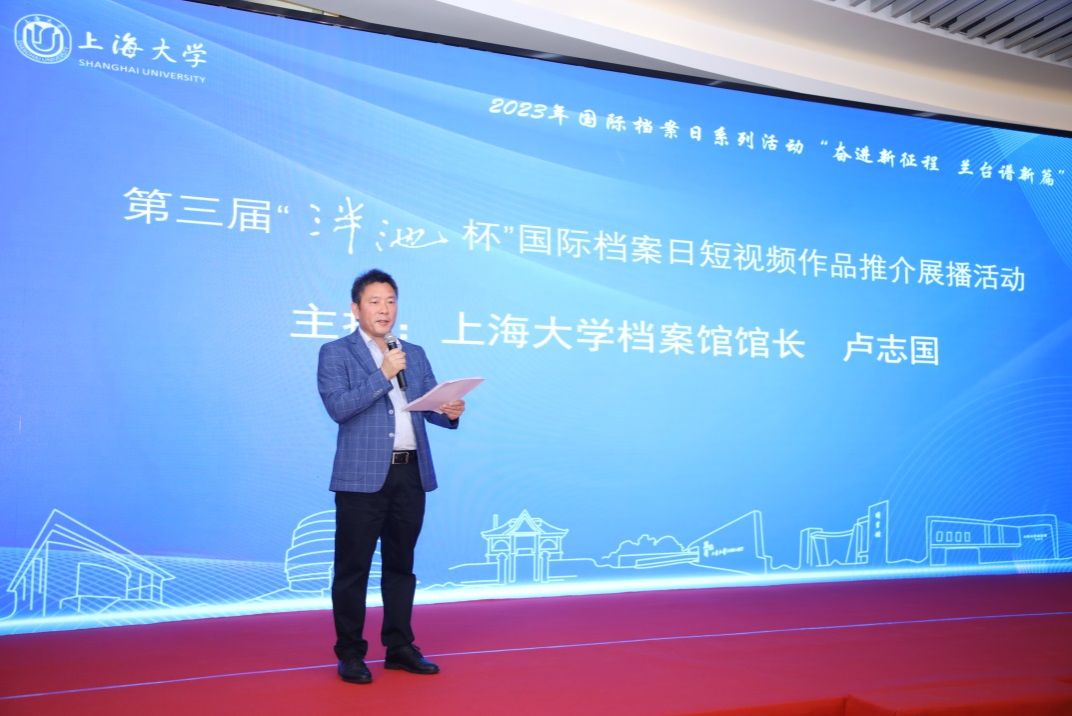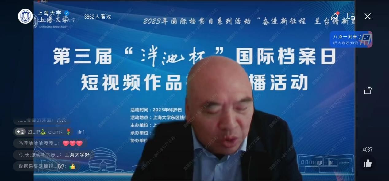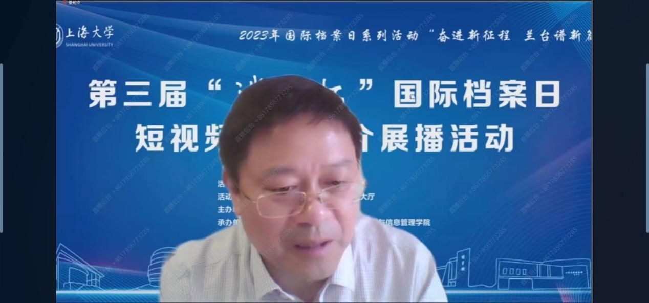 为庆祝第16个国际档案日,6月9日上午,由365英国上市官网在线主办、365英国上市官网在线档案馆和365英国上市官网在线文化遗产与信息管理学院承办、365英国上市官网在线博物馆协办,主题为“奋进新征程兰台谱新篇”的第三届“泮池杯”国际档案日短视频作品推介展播活动,在365英国上市官网在线钱伟长图书馆成功举行。本次活动通过365英国上市官网在线视频号进行了同步直播。出席本次活动有校党委副书记、纪委书记段勇,教育部高等学校档案学专业教学指导委员会副主任委员、南京大学信息管理学院教授吴建华,上海市档案学会高校档案专业委员会理事长、华东师范大学档案馆馆长汤涛,上海交通大学档案文博管理中心副主任、校史博物馆馆长欧七斤,党委宣传部副部长(融媒体中心主任)吴铭,学生工作办公室主任孟祥栋,团委书记冯凌燕,党委研究生工作部部长魏宏,文化遗产与信息管理学院党委书记丁华东,图书馆博物馆档案馆党委书记王远弟,博物馆馆长李明斌,文化遗产与信息管理学院副书记副院长韦淑珍、图书馆副馆长倪代川,获奖短视频作品团队代表,以及365官网师生共80余人,线上观众4089人。