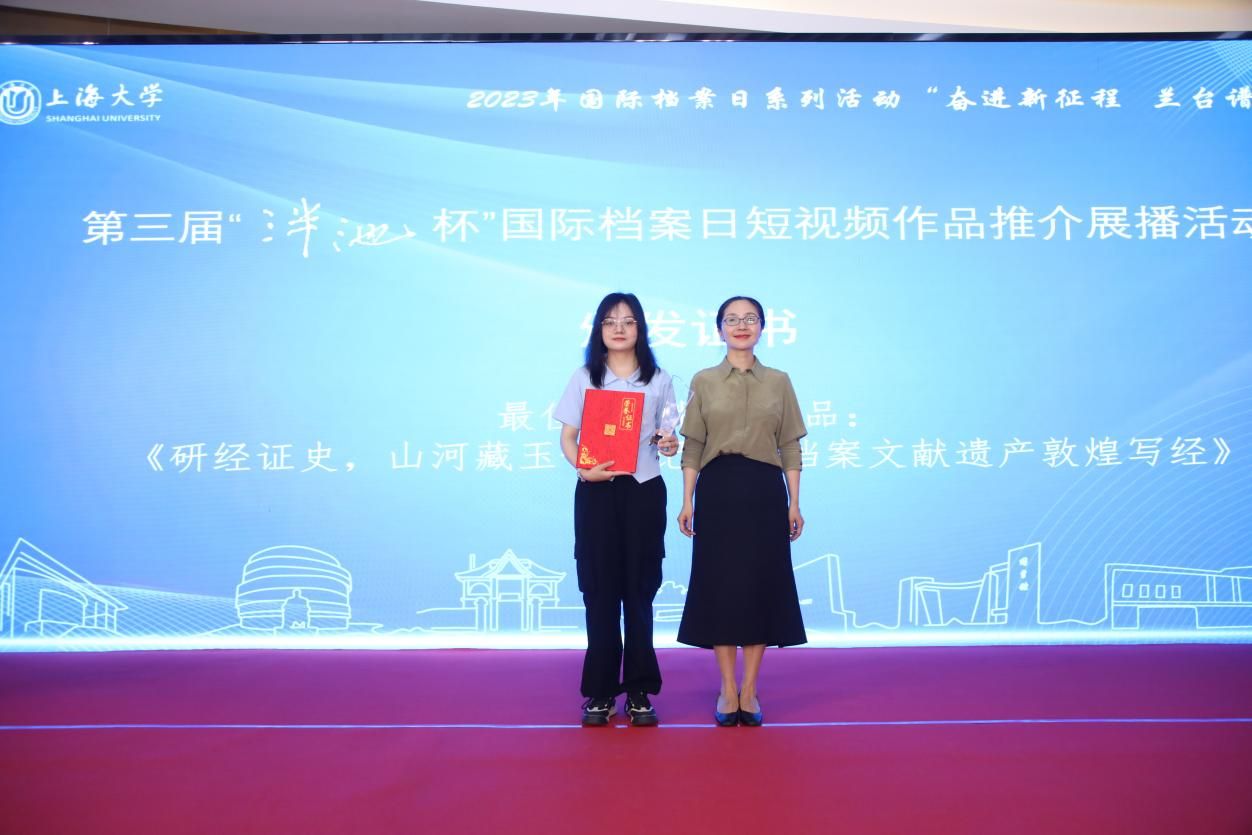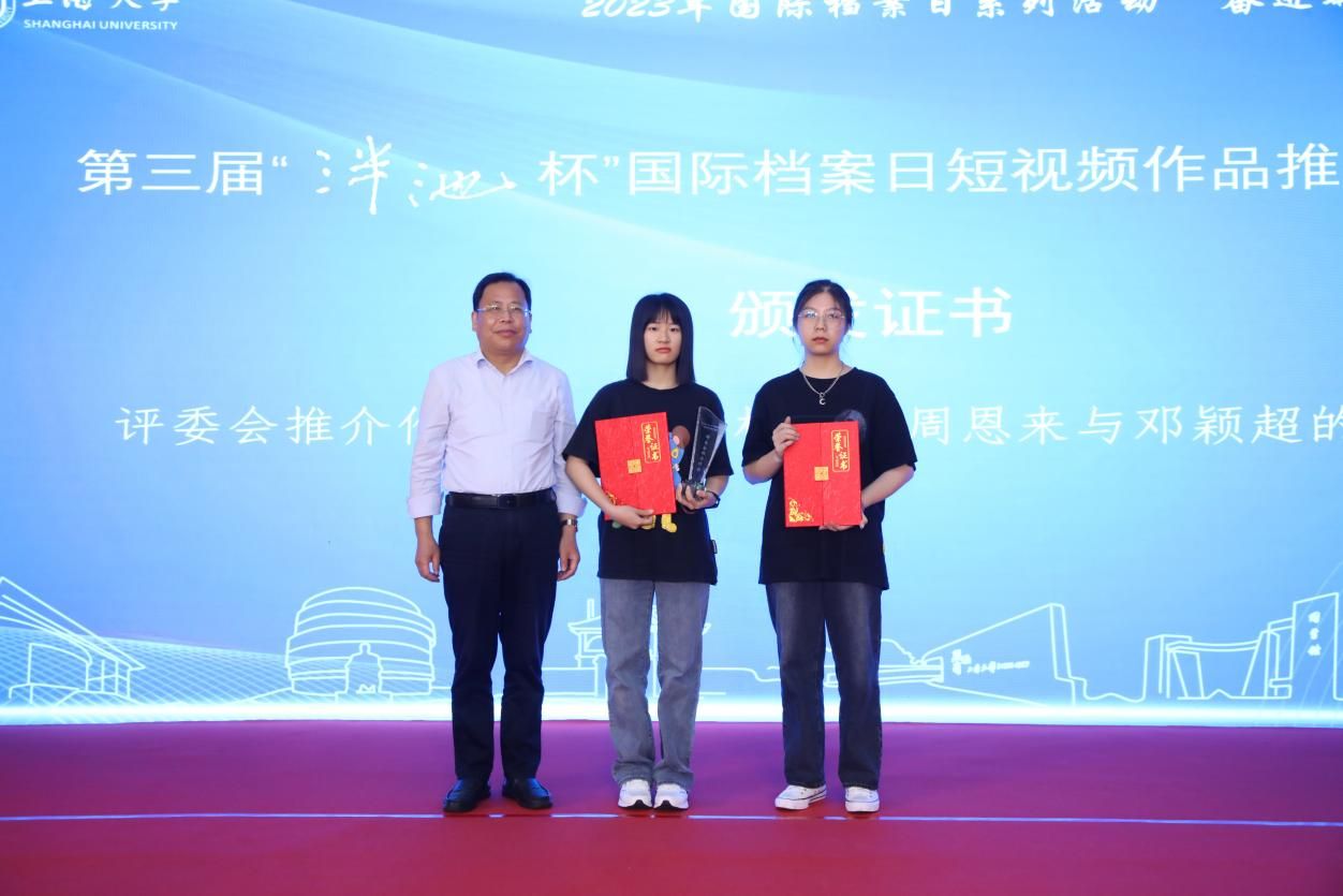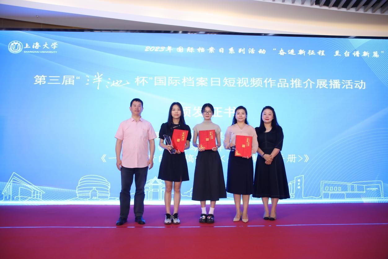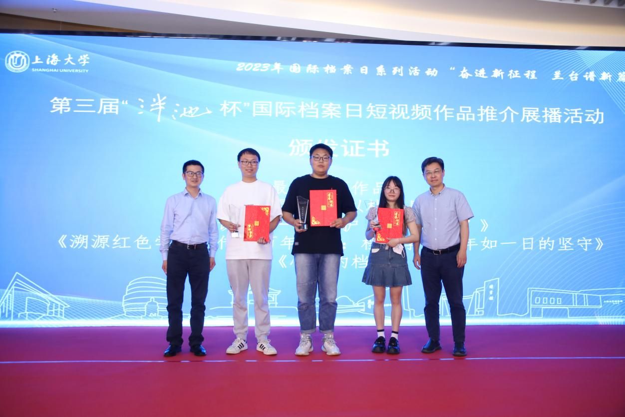 为庆祝第16个国际档案日,6月9日上午,由365英国上市官网在线主办、365英国上市官网在线档案馆和365英国上市官网在线文化遗产与信息管理学院承办、365英国上市官网在线博物馆协办,主题为“奋进新征程兰台谱新篇”的第三届“泮池杯”国际档案日短视频作品推介展播活动,在365英国上市官网在线钱伟长图书馆成功举行。本次活动通过365英国上市官网在线视频号进行了同步直播。出席本次活动有校党委副书记、纪委书记段勇,教育部高等学校档案学专业教学指导委员会副主任委员、南京大学信息管理学院教授吴建华,上海市档案学会高校档案专业委员会理事长、华东师范大学档案馆馆长汤涛,上海交通大学档案文博管理中心副主任、校史博物馆馆长欧七斤,党委宣传部副部长(融媒体中心主任)吴铭,学生工作办公室主任孟祥栋,团委书记冯凌燕,党委研究生工作部部长魏宏,文化遗产与信息管理学院党委书记丁华东,图书馆博物馆档案馆党委书记王远弟,博物馆馆长李明斌,文化遗产与信息管理学院副书记副院长韦淑珍、图书馆副馆长倪代川,获奖短视频作品团队代表,以及365官网师生共80余人,线上观众4089人。