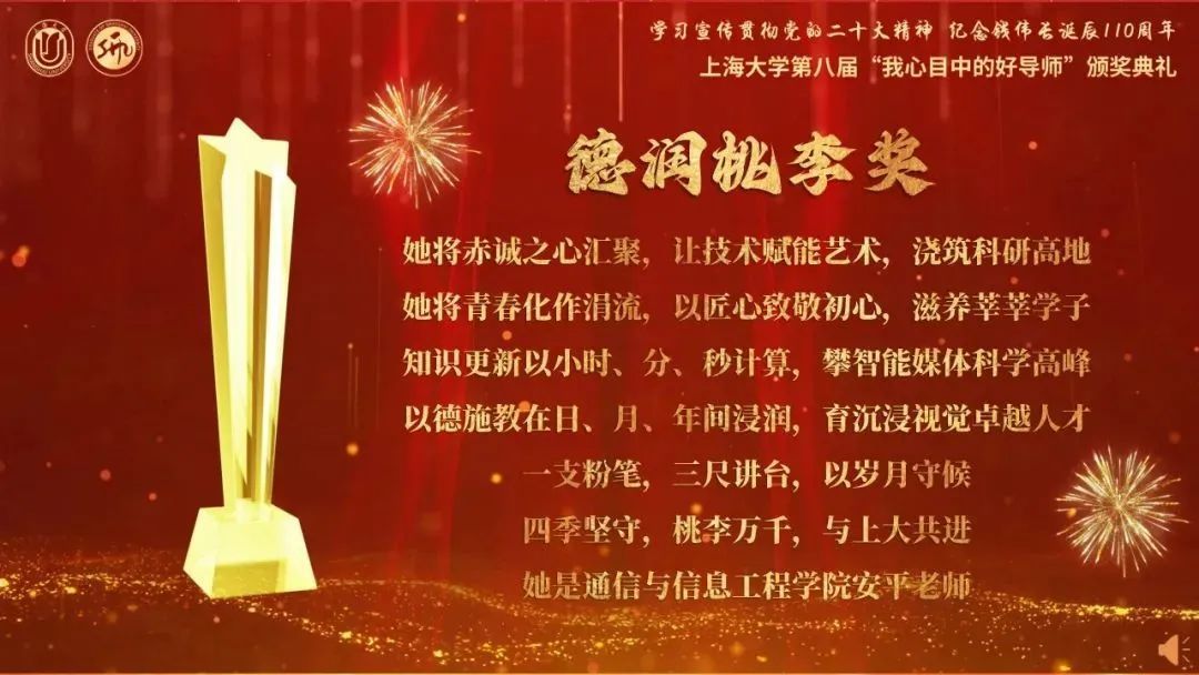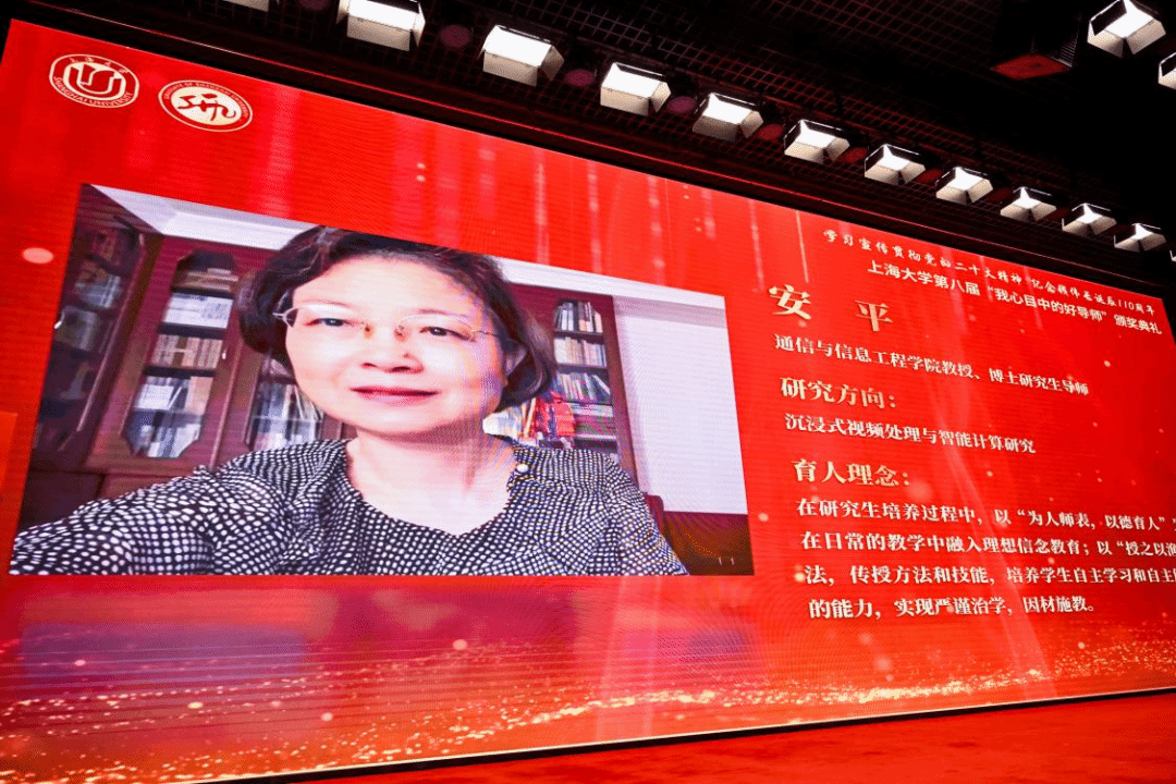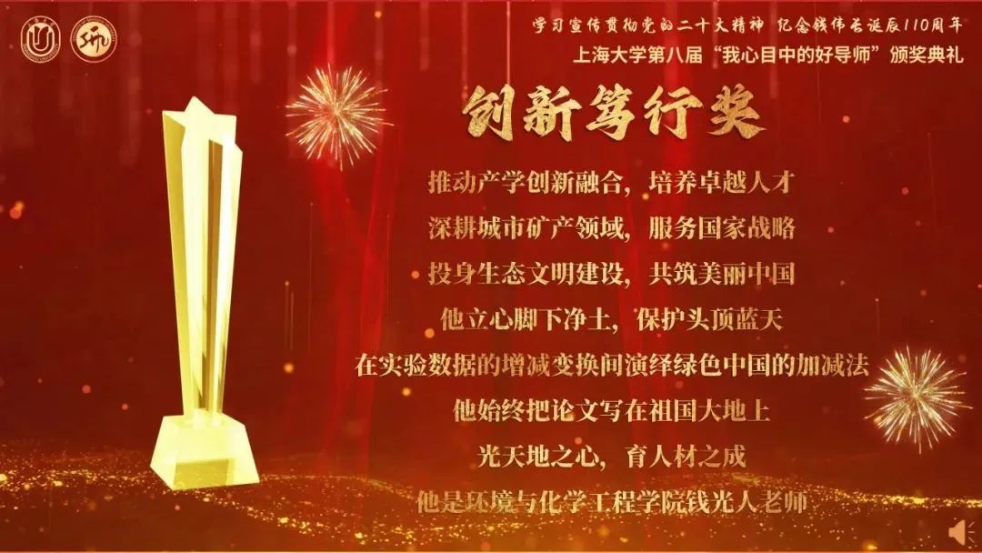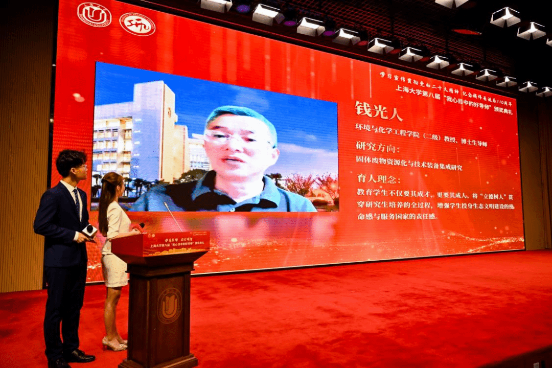“德润桃李奖”获得者通信与信息工程学院安平教授和“创新笃行奖”获得者环境与化学工程学院钱光人教授通过视频的方式向广大研究生学子分享了心声。安平教授指出:在人生旅途中,唯有向上的路才是最难走的,祝愿每一位学生都能走出属于自己的精彩华章。钱光人教授表示:今天获得的这份珍贵荣誉不仅属于个人,更是属于并肩奋斗二十多年的上大同事与同学们,今后他将继续带领团队朝着追求卓越、争创一流的上大梦坚定迈进。