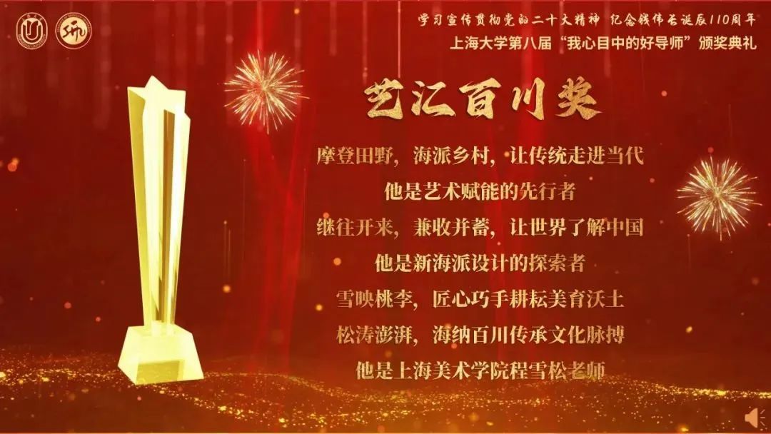 “艺汇百川奖”获得者上海美术学院程雪松教授分享了在以美育人、美美与共的过程中的独特育人理念,他指出:“天地有大美而不言”。作为教育工作者,对学生的培养应当兼具“艺术修养和人文情怀”“职业素养和专业能力”“工匠精神和创新意识”,帮助其成为引领行业发展、直面社会变革的建设者和接班人。同时,美育浸润无声,学习思辨笃行,我们要在实践的过程中感受美、探索美。