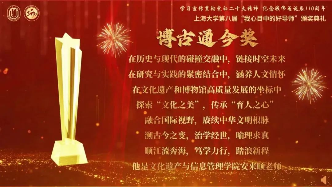 “博古通今奖”获得者文化遗产与信息管理学院安来顺教授分享了在培养学生的过程中如何拓展国际化视野,让中华文化“出圈”全世界的方法。他表示,未经思辨的实践是盲目的,离开实践的思辨是苍白的,而对文化遗产事业的敬畏与忠诚贯穿二者始终。作为一名导师,要注重培养学生的批判性思维,帮助其做到“走出去,请进来”,积极应对挑战,站立领域前瞻。