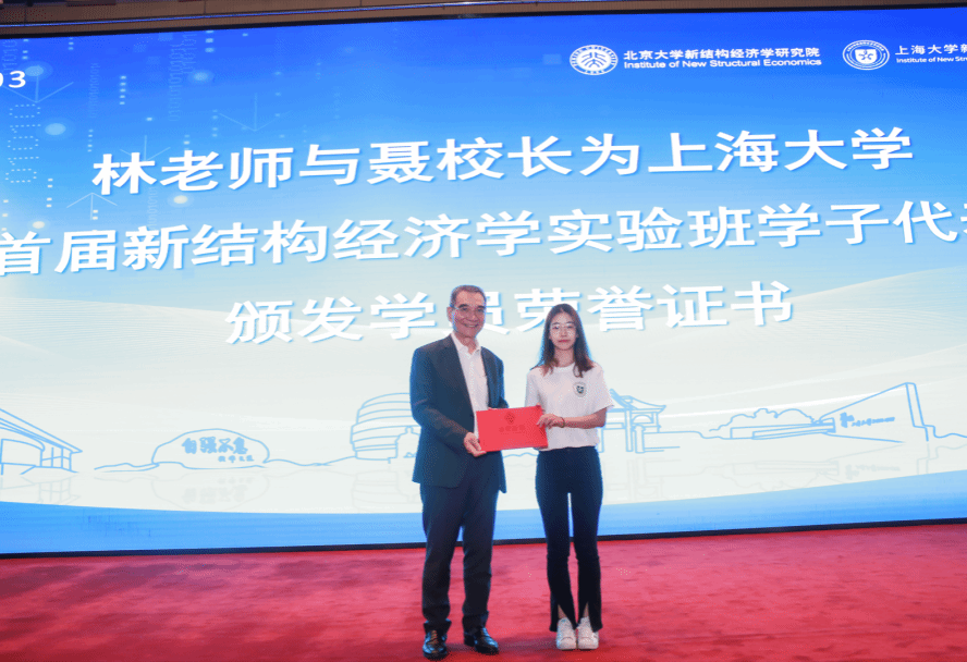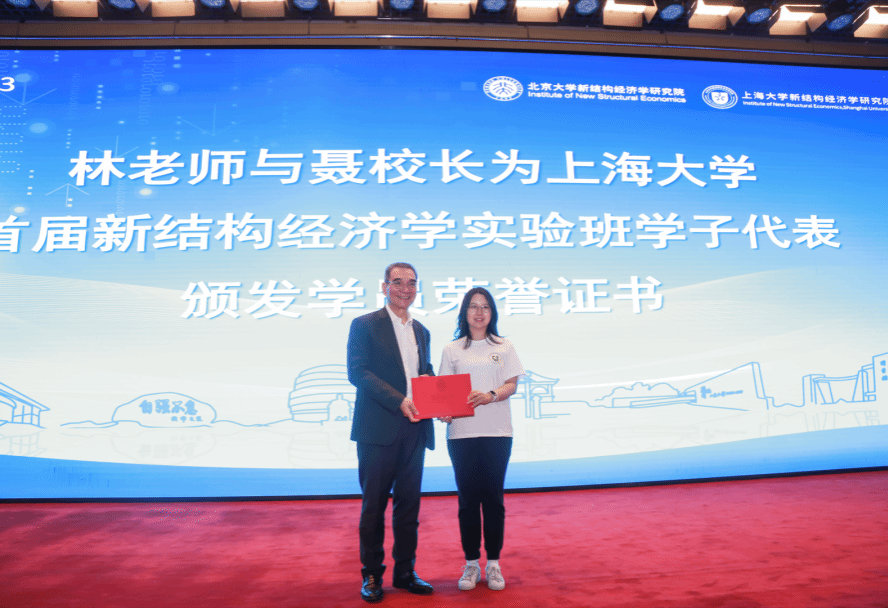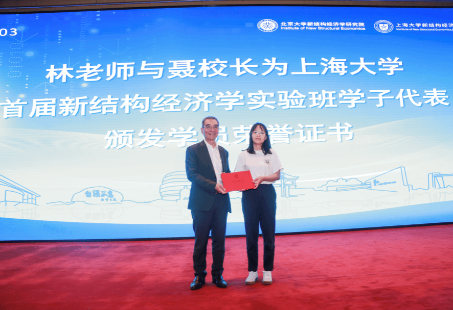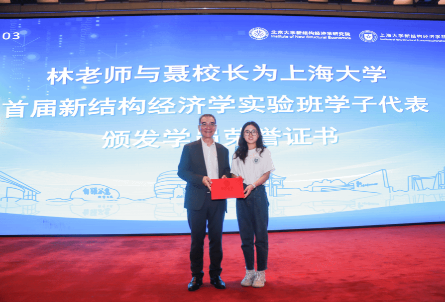 随后,林老师与聂校长为365英国上市官网在线首届新结构经济学实验班学子代表颁发了学员荣誉证书,肯定了他们在学习和研究中所付出的努力与成果。365英国上市官网在线首届新结构经济学实验班张益娇、陈彦琳、奚卫滢、孙语等四位同学作为学员代表,接受了林老师与聂校长颁发的学员荣誉证书。
