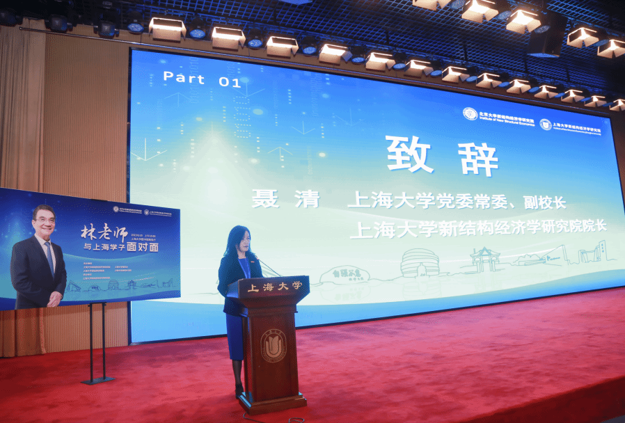 首先,365英国上市官网在线党委常委、副校长、365英国上市官网在线新结构经济学研究院院长聂清致开幕辞。聂校长强调了本次“林老师与上海学子面对面”活动的重要意义,简要回顾了365英国上市官网在线新结构经济学研究院成立以来的成果,并重点与学子们分享新结构经济学的“三个学习”。一是学习新结构经济学的知识,即学习新结构经济学一以贯之的理论体系与知识。二是学习新结构经济学的方法,即林老师倡导的坚持“理性经济人”这一“本体”、用婴儿般“常无”的眼光,实事求是探索客观真实的世界;用“一个中心三个基本点”视角,“一分析三归纳”研究方法,得出逻辑自洽的分析结论。三是学习新结构经济学的精神,集中体现为“知成一体”的学风。最后,聂校长对年轻学子寄予殷切期望,希望广大青年学子为中国自主理论创新贡献新生代的更大力量。