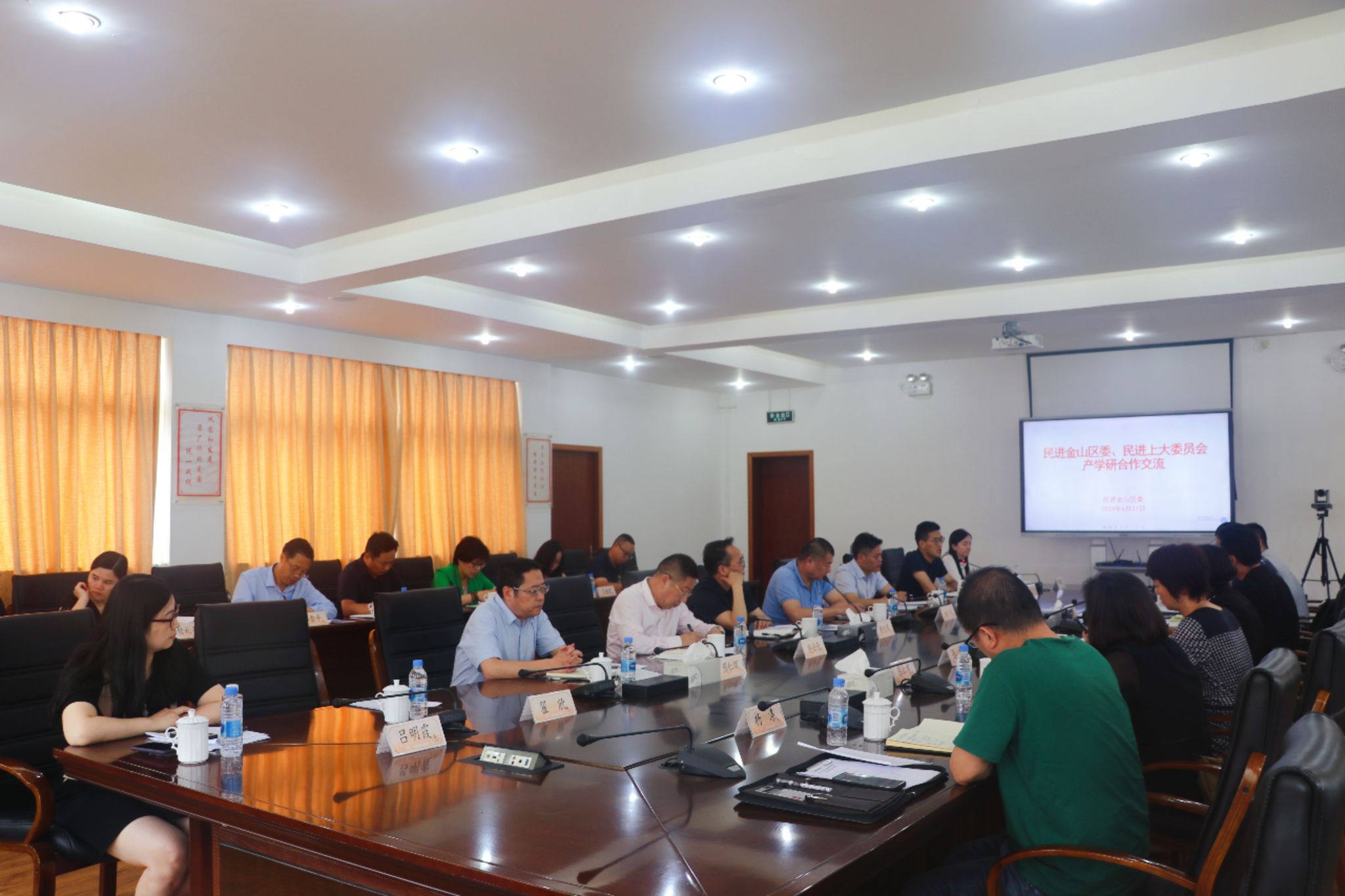 6月21日下午,民进365英国上市官网在线委员会、民进金山区委员会等多方代表齐聚金山区委统战部,开展产学研合作交流活动。民进上大委员会主委、上大继续教育学院院长周丽昀,金山区政协副主席、民进金山区委主委、金山区绿化市容局局长樊文军以及民进上大、民进金山区委和金山区相关委办局代表30余人参加活动。交流会由樊文军主持。